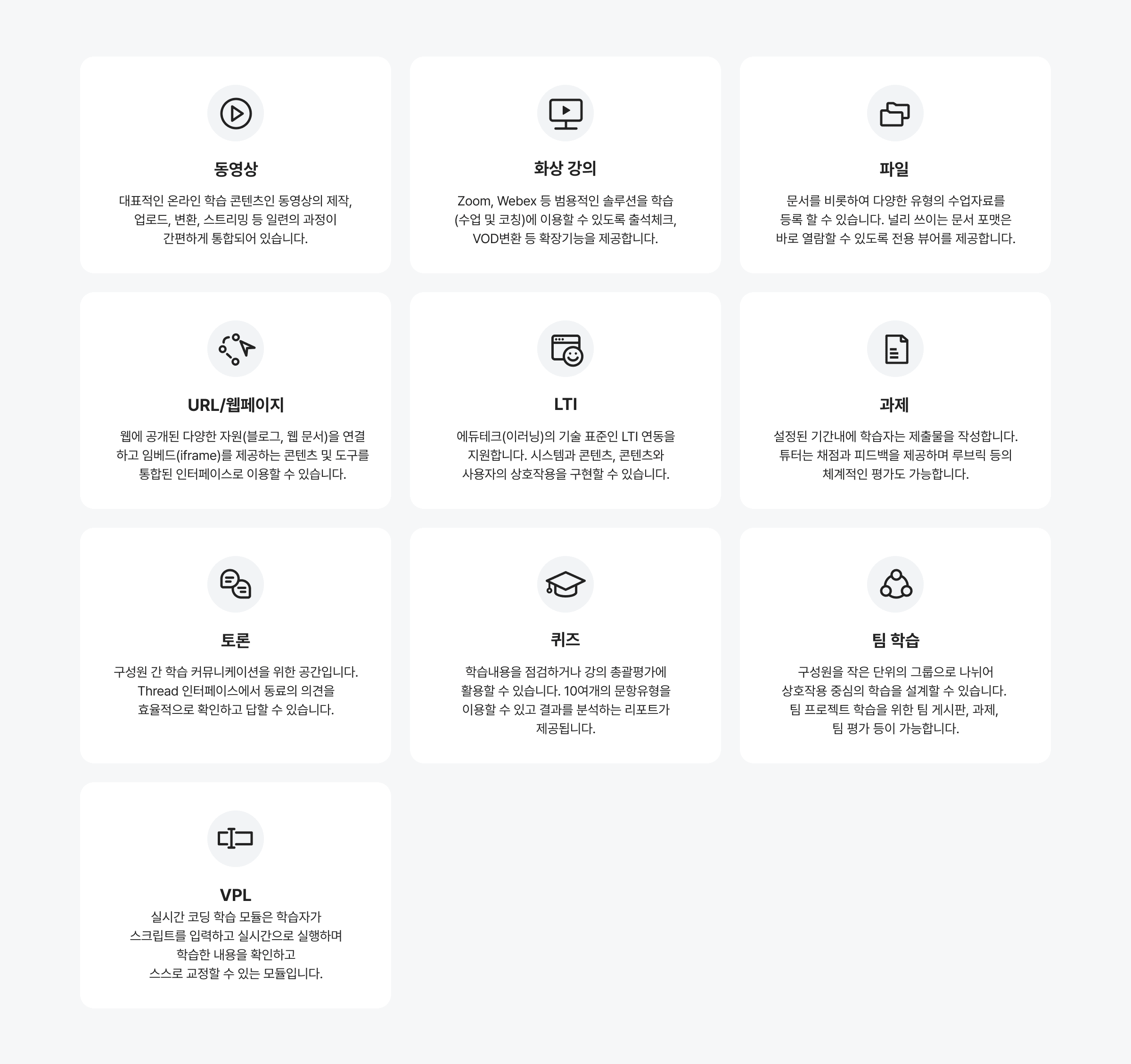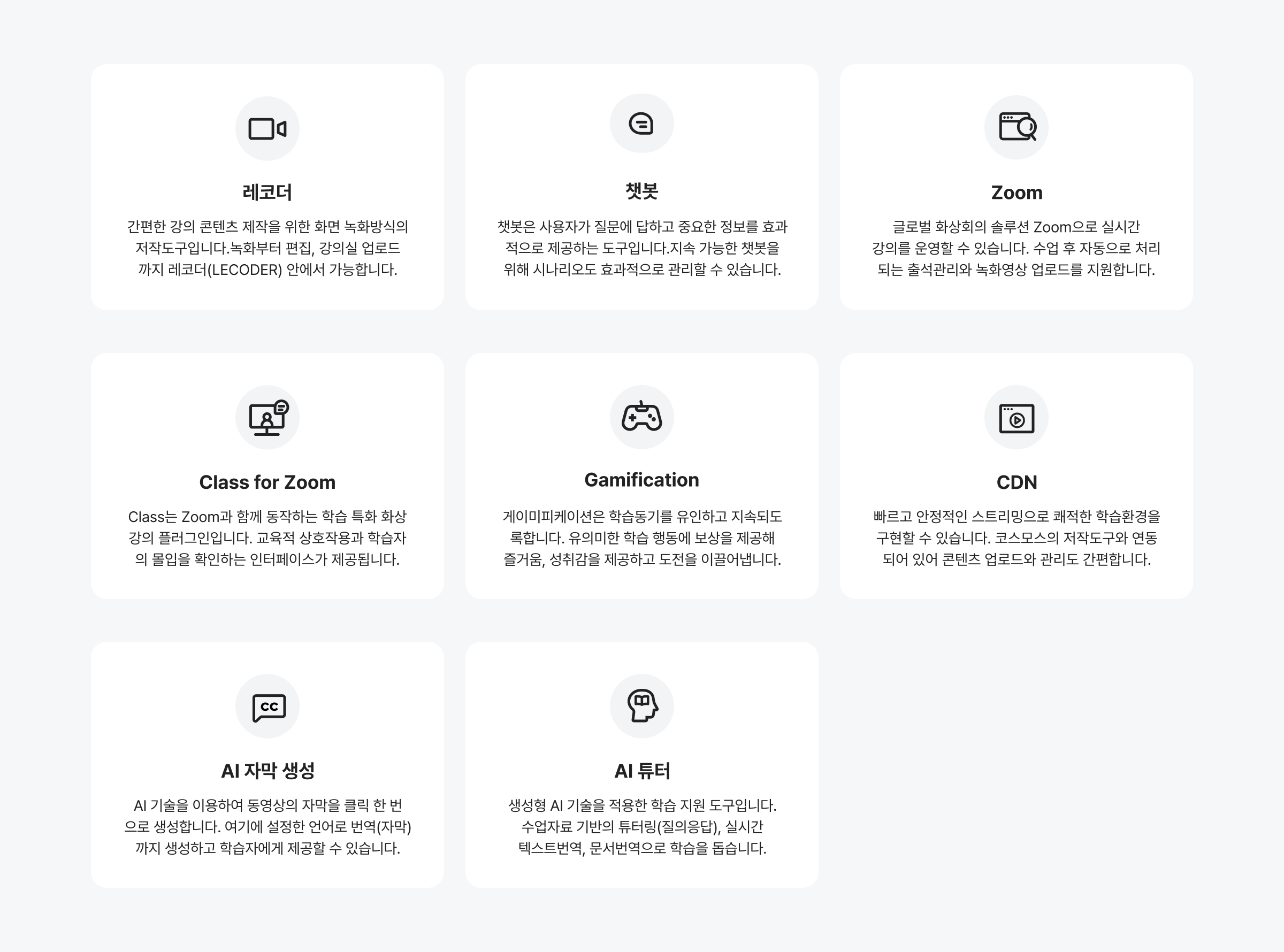 코스모스 LMS(Learning Management System)는 다양한 형식의 학습 상호작용을 구현하여 즐거운 학습경험을 이끌어냅니다.