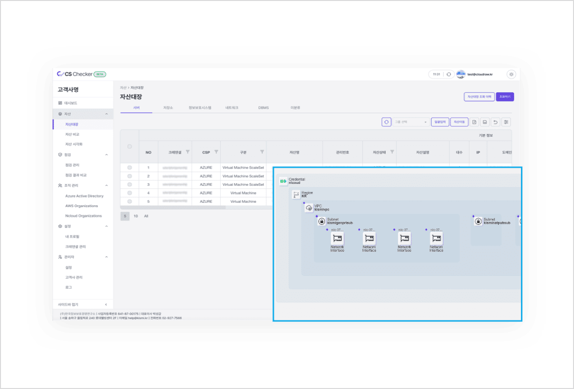 - 클라우드 인프라 자산 관리(서버, 네트워크, DBMS, 정보보호시스템, 저장소, 미분류)
