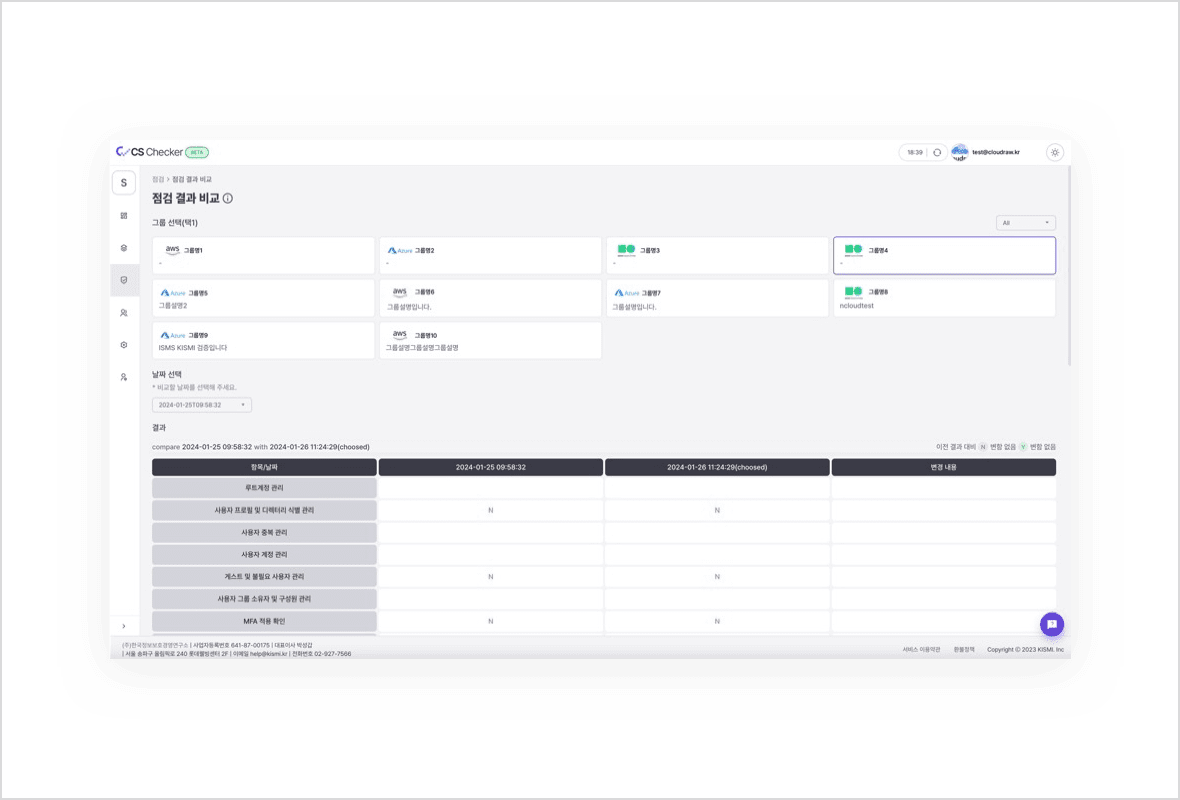 과거 점검 결과와 사용자가 선택한 점검 결과를 비교할 수 있습니다.