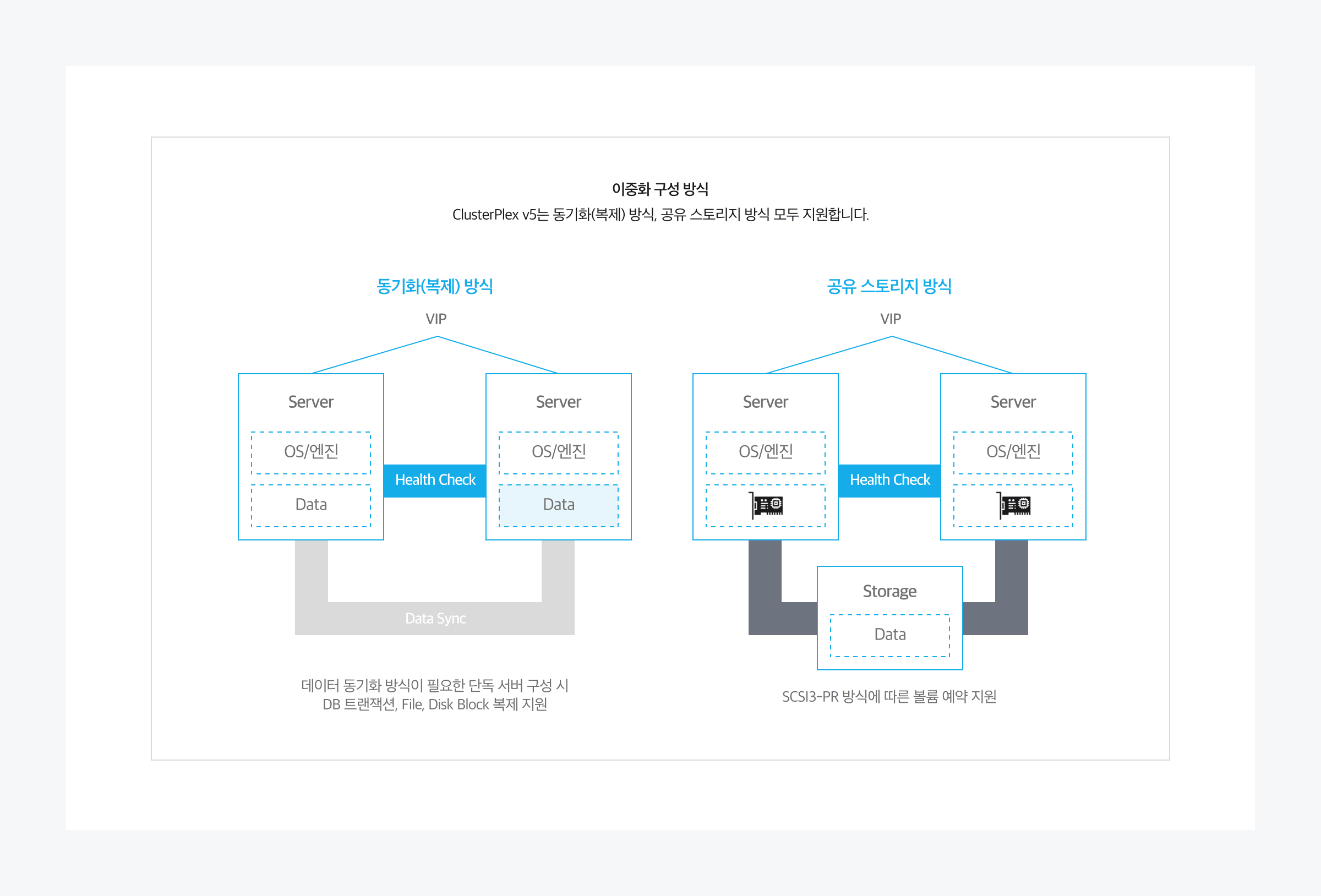 · Split-Brain(File System Crash) 예방조치에 대한 Clustering Safe 기능