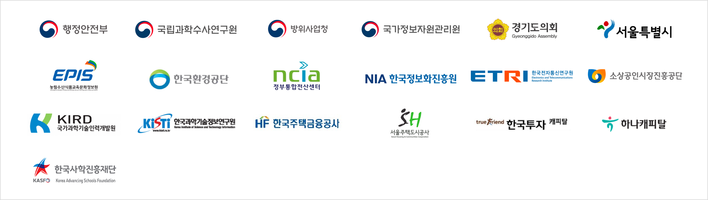 외산/클라우드 등 소프트웨어 AWS, MS365, Google- Suite, Oracle BI, Adobe, SAS, Paxata, SAP, GitLab, NHN 두레이, IBM LTPA, Oracle WebCenter, MS Sharepoint