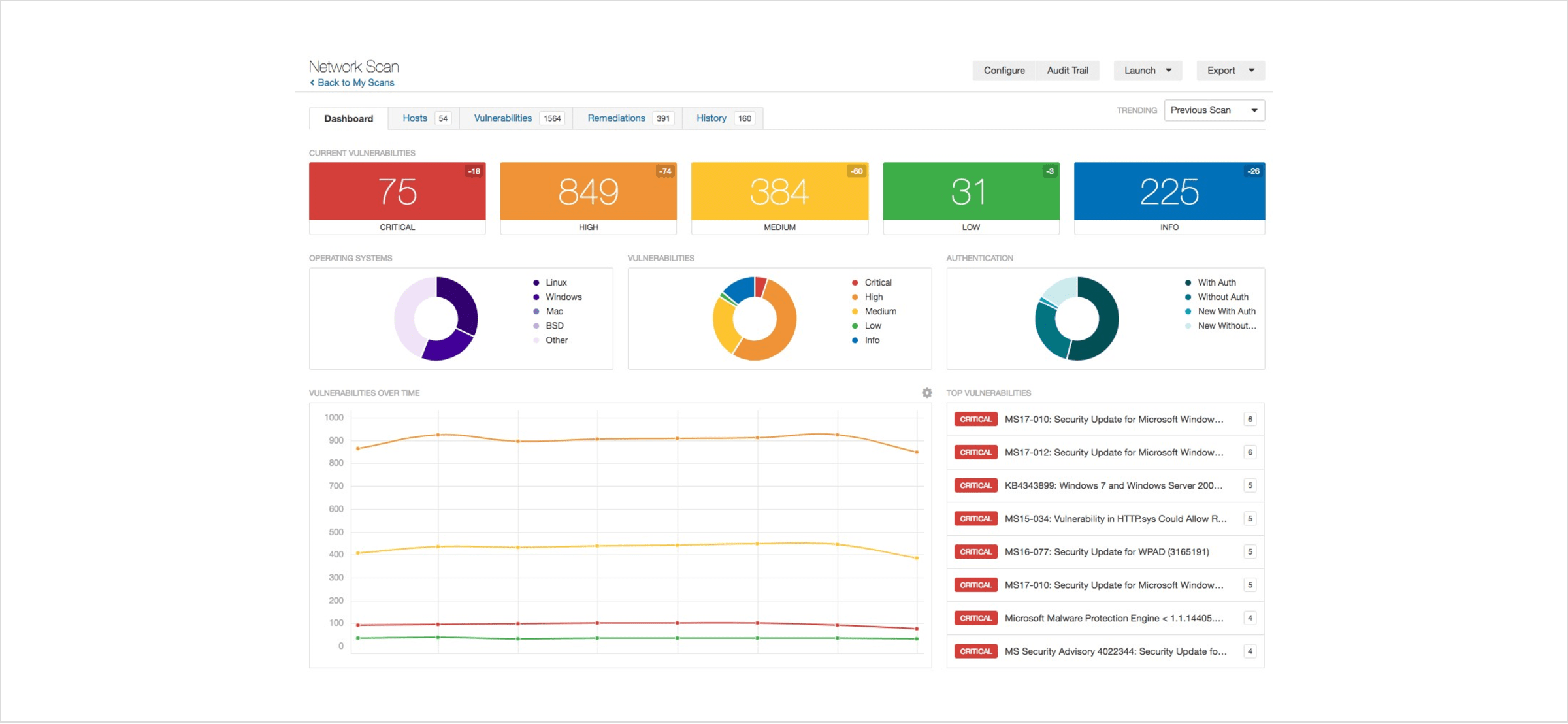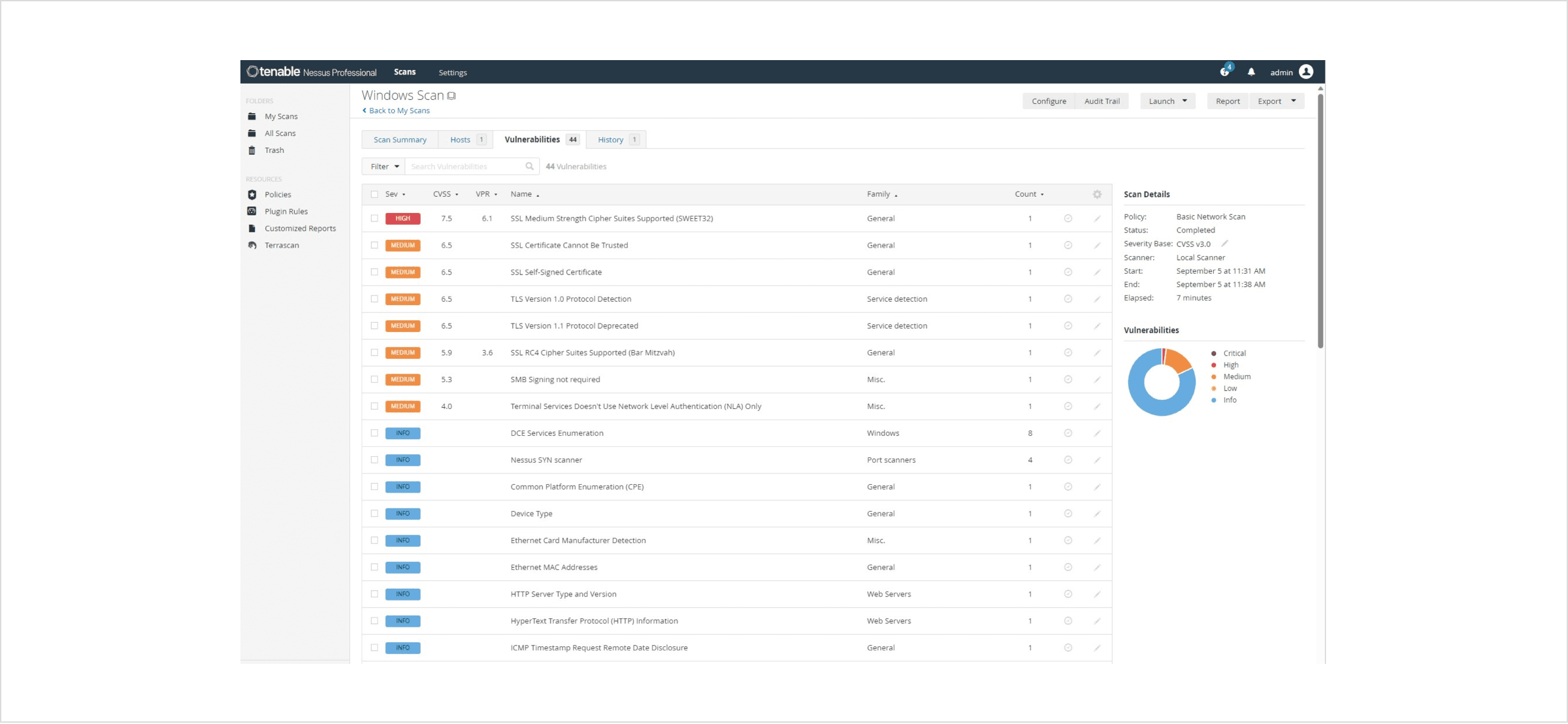 Nessus는 빠르고 정확한 스캔을 통해 우선조치가 필요한 취약점을 식별하고,  해결해야 하는 취약점을 강조 표시합니다.