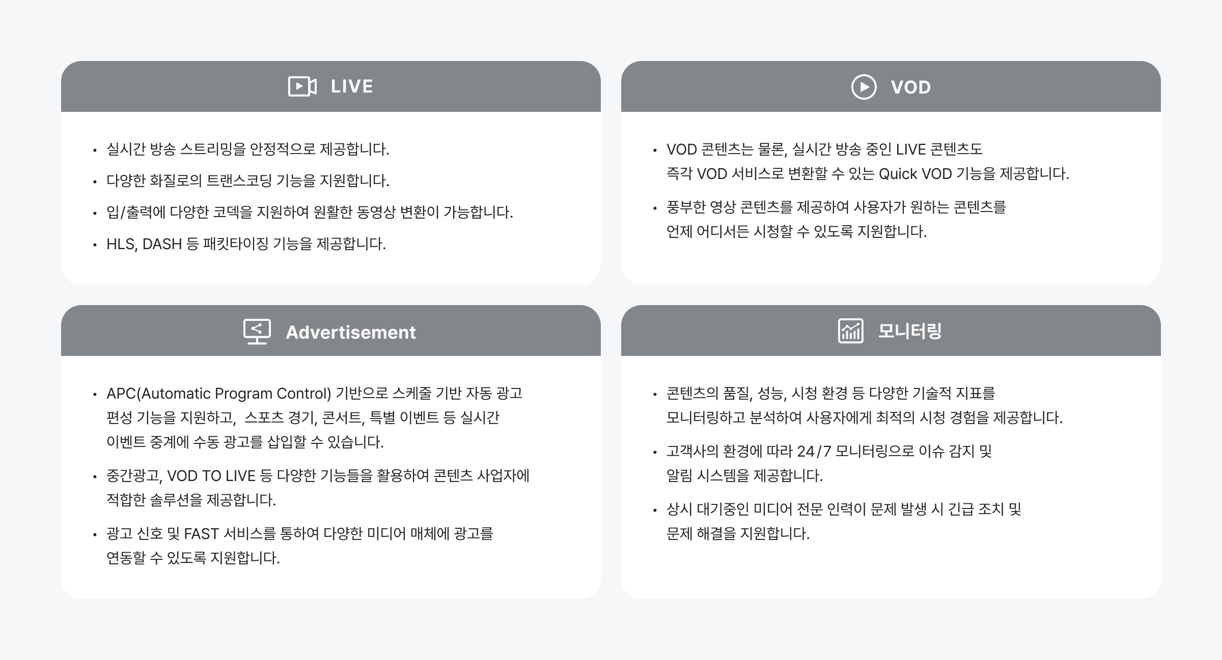 End-To-End 미디어 서비스를 제공하는 통합 OVP 플랫폼입니다.
