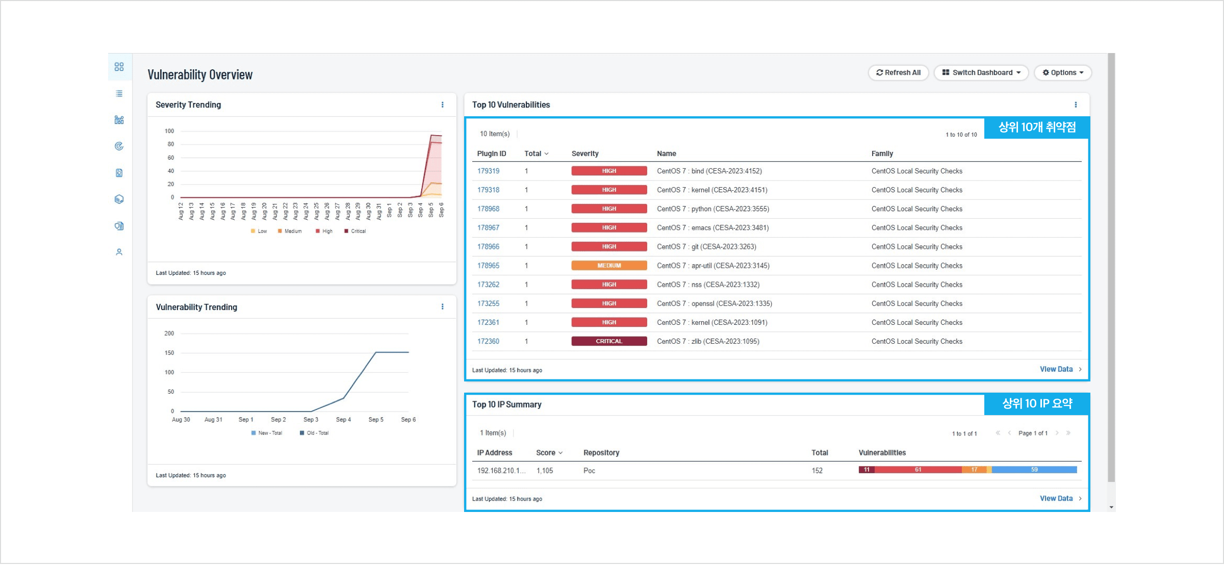 예) 취약점 트렌드, Top 10 취약점, 취약 클라이언트