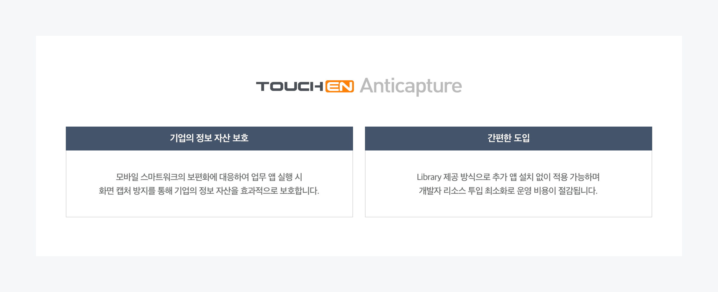 ㆍ별도 앱 추가설치가 불필요하고 Library가 적용된 앱 실행 시에만 화면 캡처를 방지