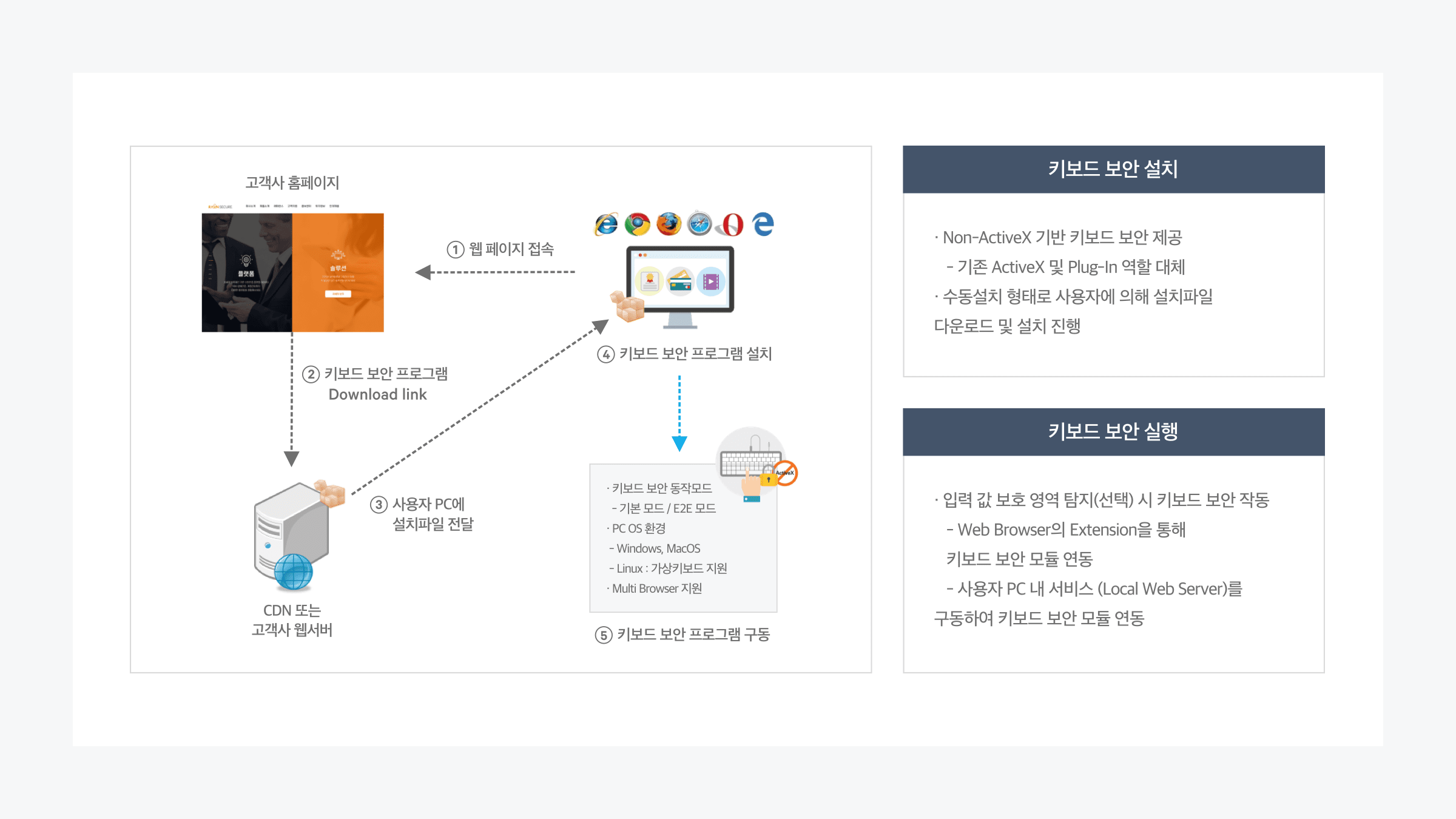 ㆍNon-ActiveX 환경 지원 - 키보드 보안 적용 방식의 선택적 적용 가능