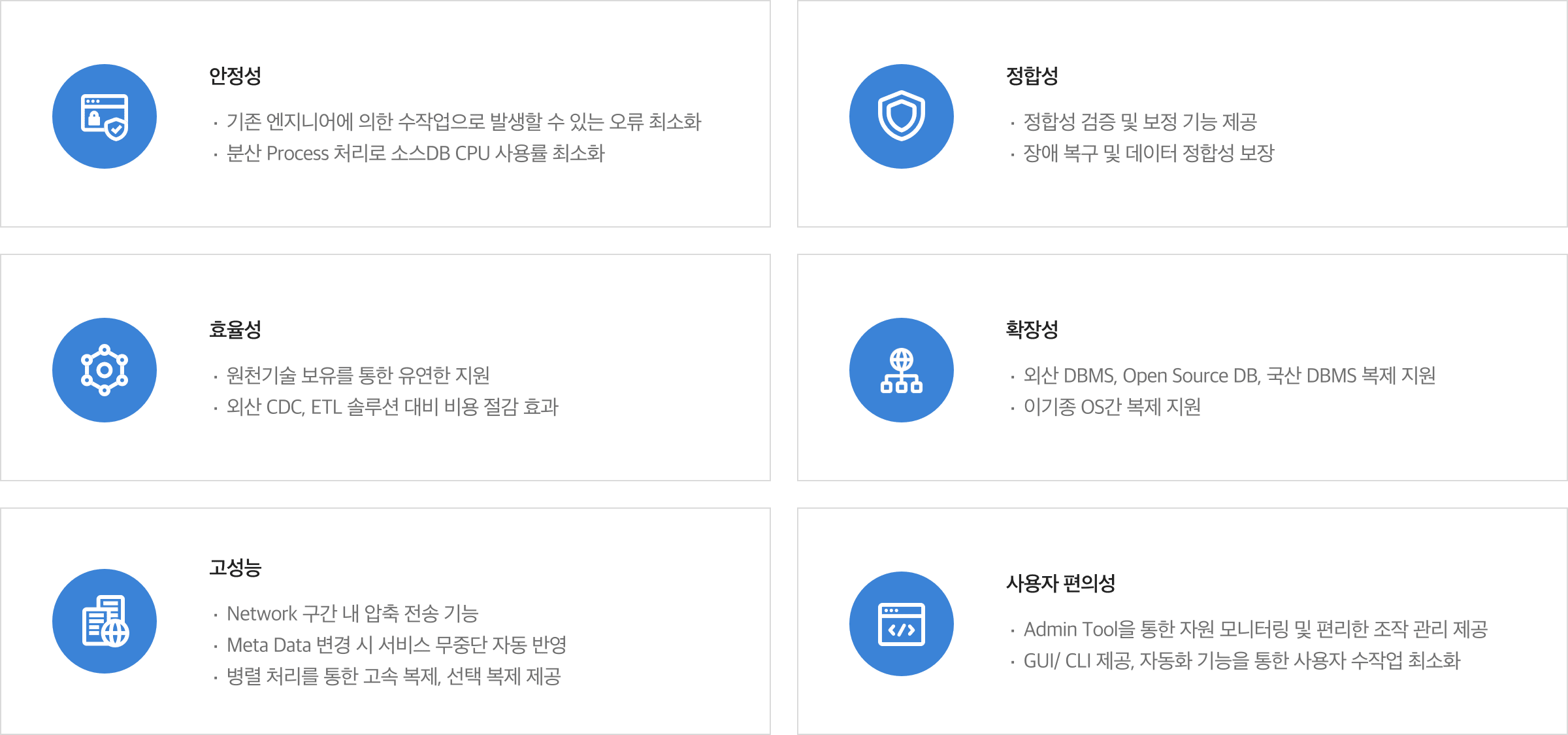 다양한 DBMS의 이기종간 및 양방향 복제 지원합니다. (클라우드 환경 포함)​