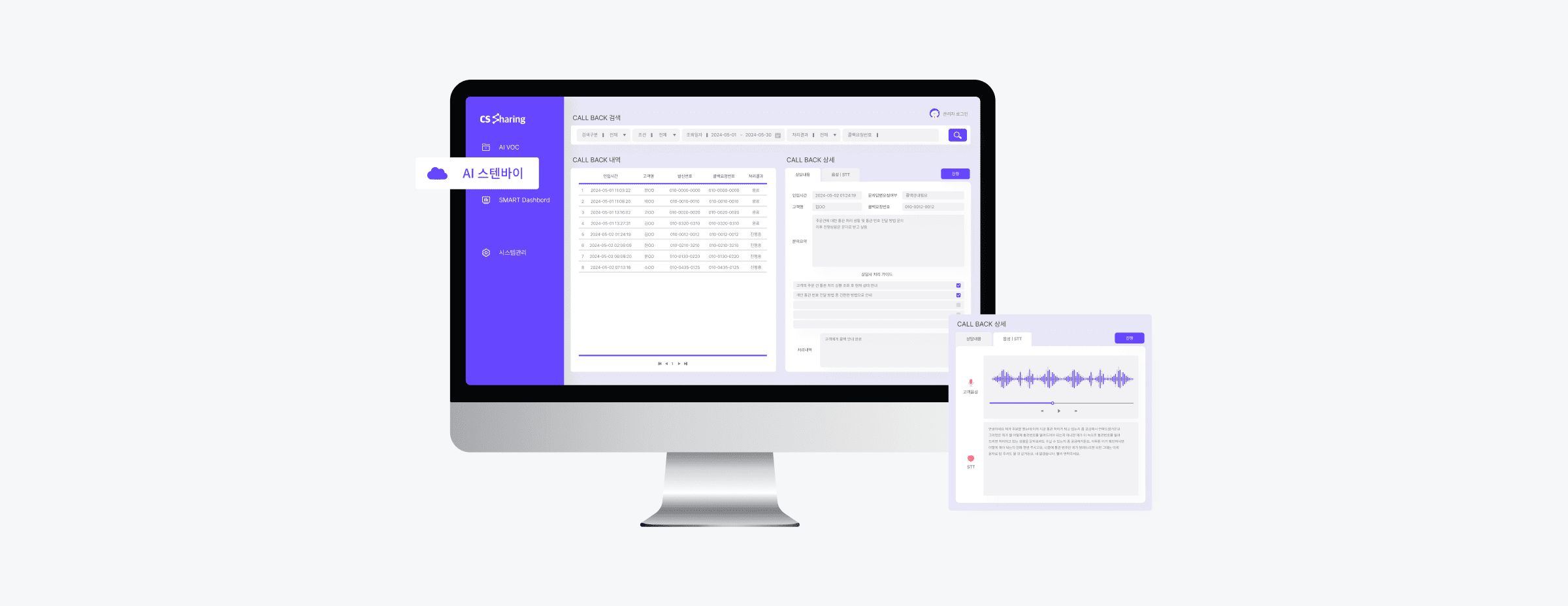 AI StandBy는 CS쉐어링의 600개 이상의 고객 상담 운영노하우가 집약되어 있는 솔루션으로서,