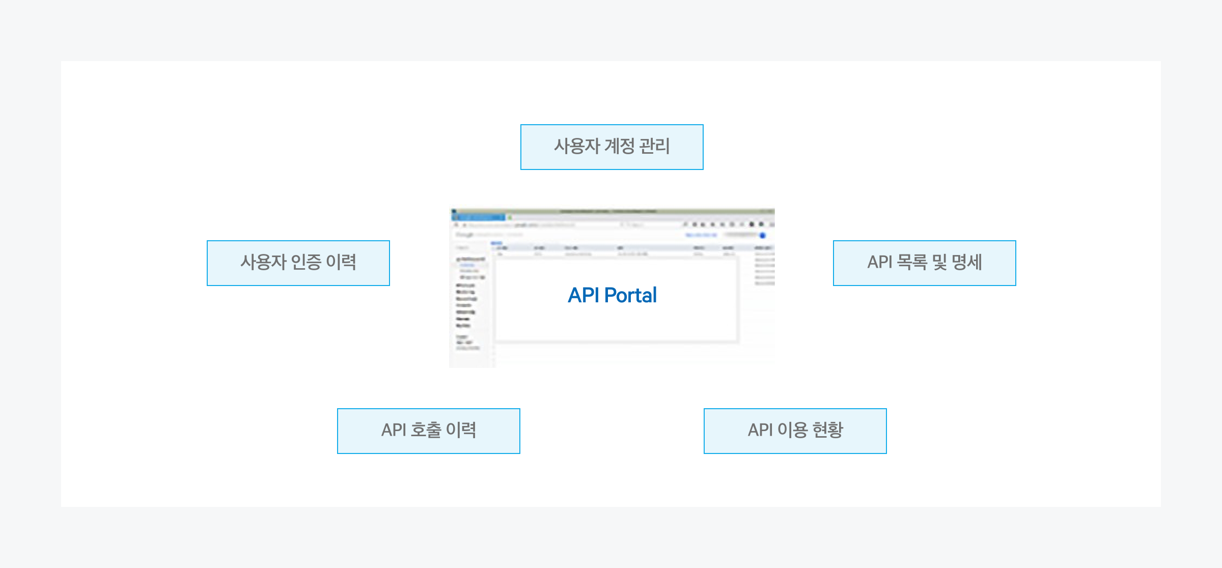 Web 기반 통합 GUI Portal을 통해 API 생성, 테스트, 배포부터 인증/인가 설정, 로그 조회, 모니터링 기능 등을 제공하여 사용자 편의성 제고