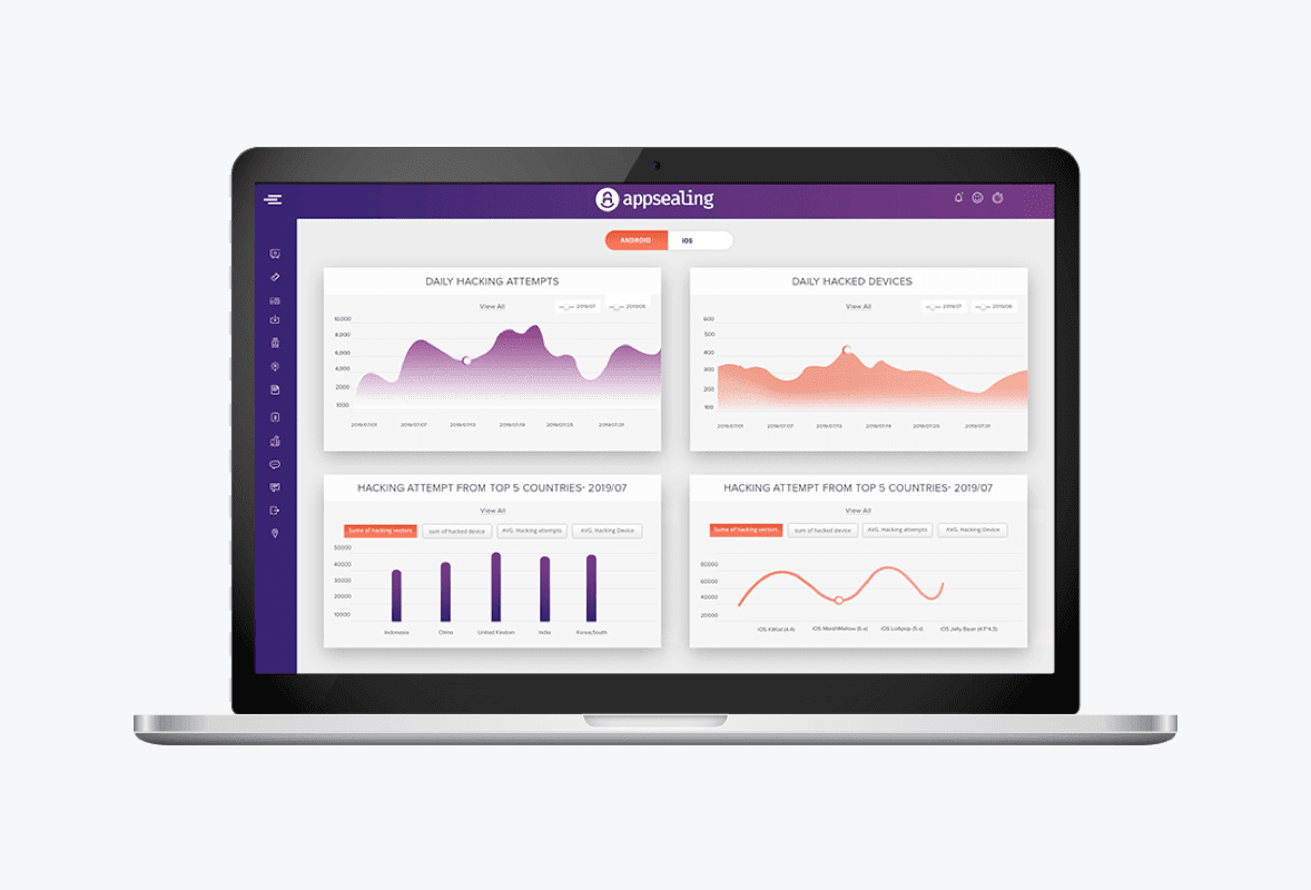 앱실링 개발자 콘솔(ADC)은 앱의 모든 해킹 시도에 관한 로그를 제공함으로써 데이터 기반의 의사결정이 가능합니다.