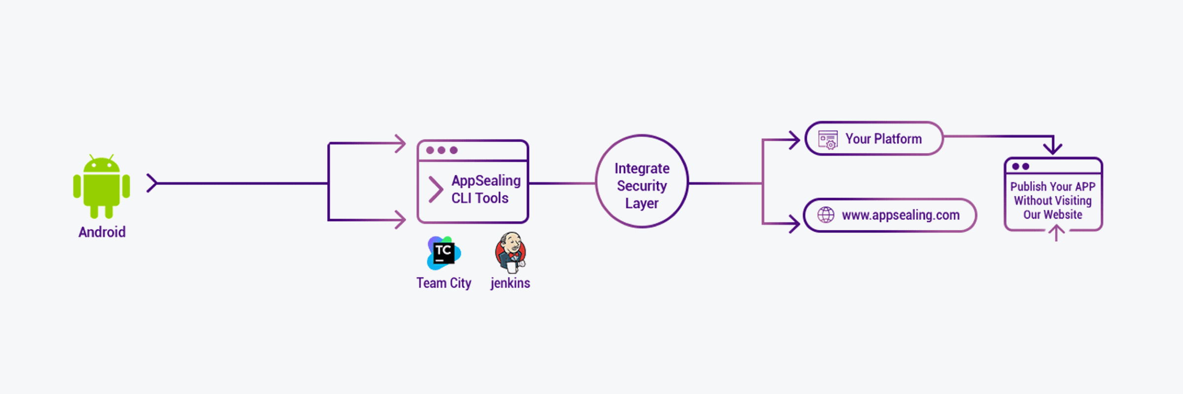 앱실링 CLI는 기존 빌드 환경과 쉽게 연동됩니다.