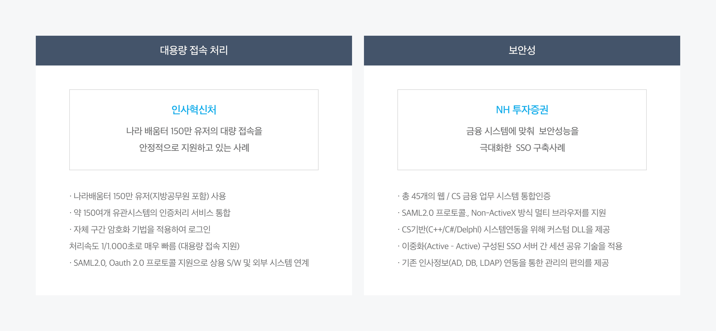 1회 인증 시간이 1/1,000초로 대용량 시스템에 적합합니다.