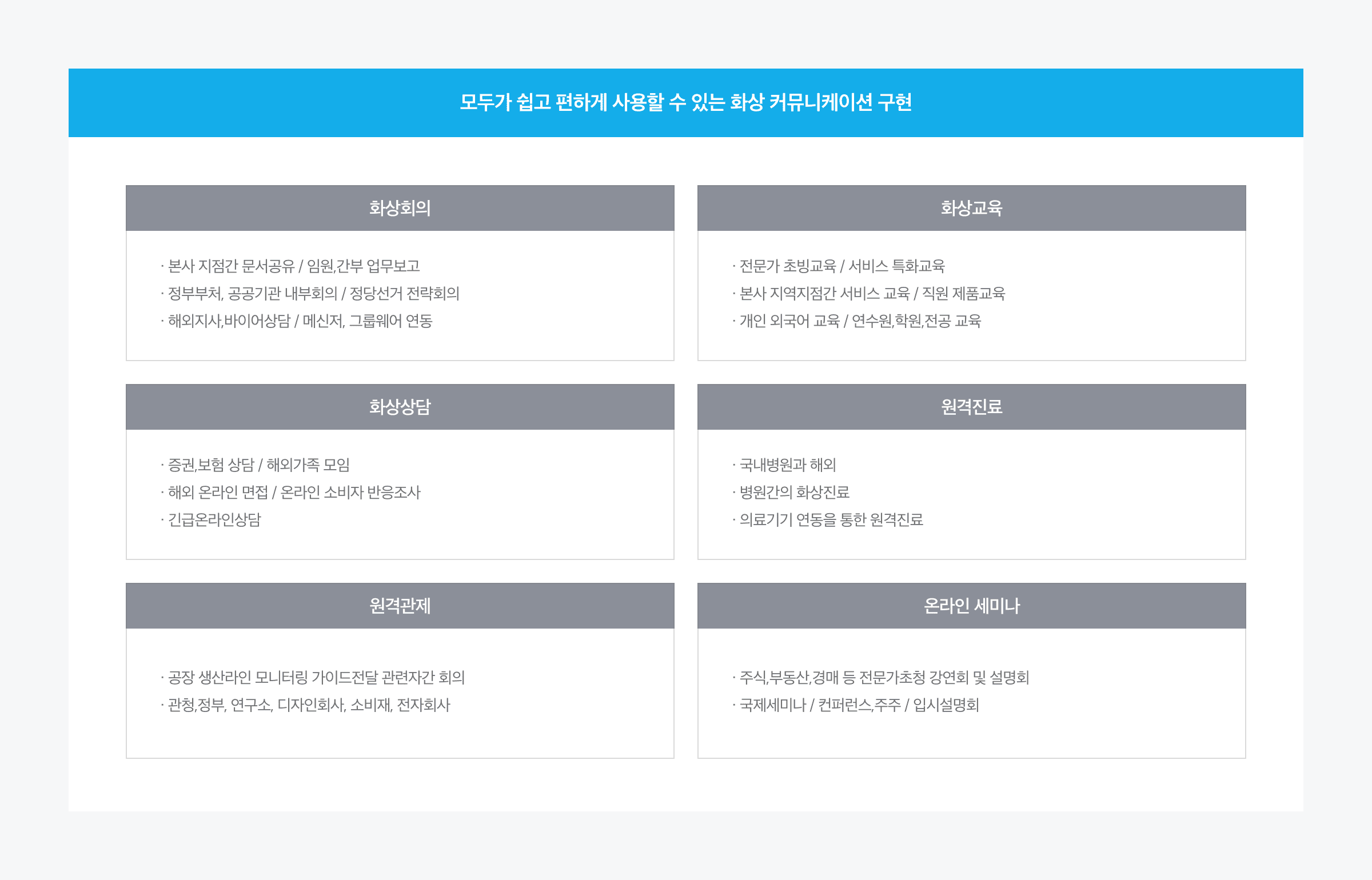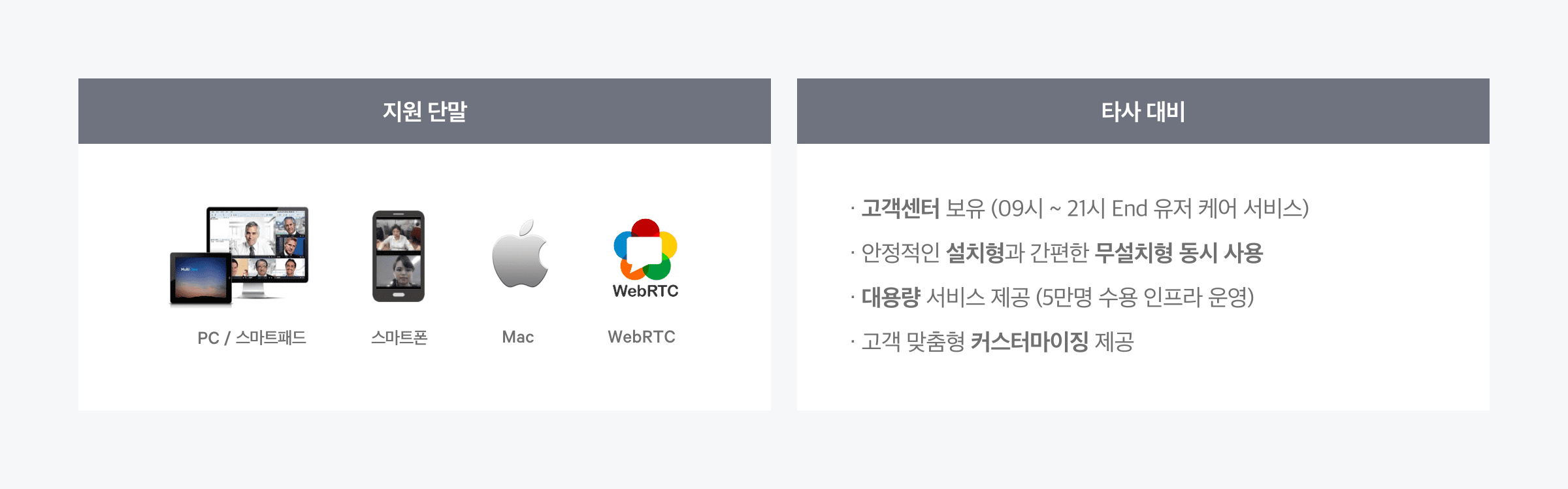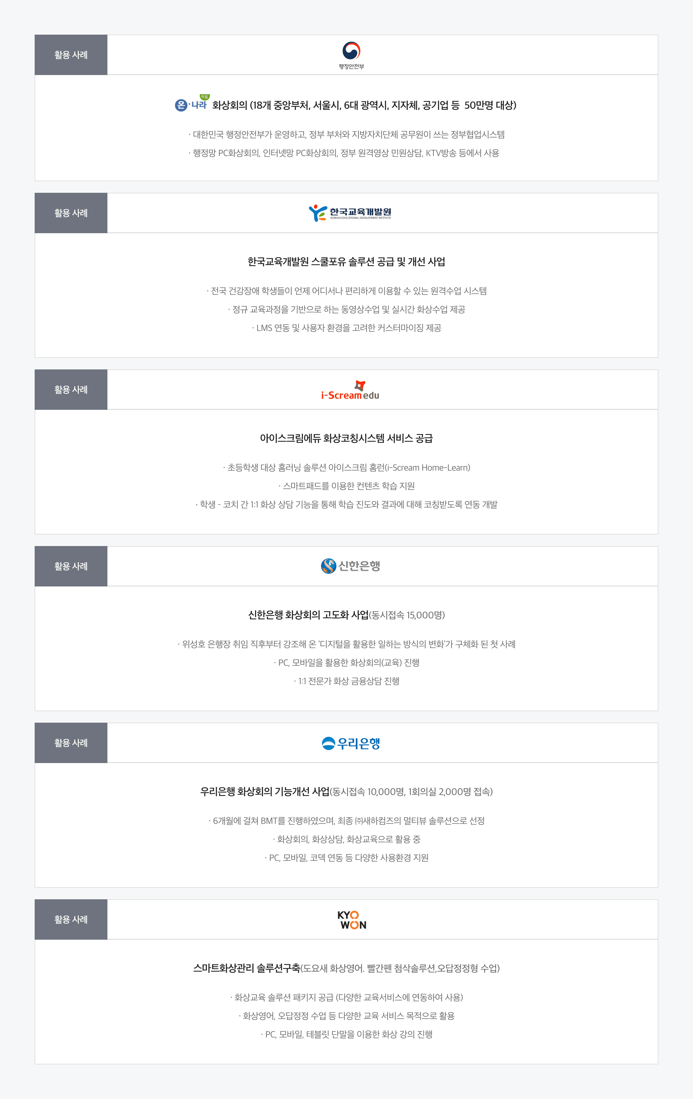 화상솔루션 보다는 다년간의 구축 실적을 통해 사용자 경험이 반영된 솔루션입니다.