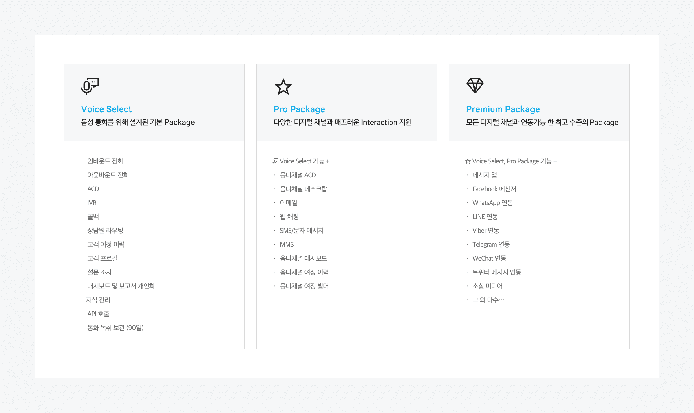 귀사의 Contact Center에 필요한 모든 기능을 탑재한 최고의 Cloud Contact Center 솔루션을 도입하세요. 새로운 기능 추가, 배포 및 소프트웨어 옵션 비용을 절감하며 세계적인 수준의 고객 경험을 제공 할 수 있는 최첨단 Contact Center 시스템과 고객 지원 플랫폼을 합리적인 가격으로 이용할 수 있습니다. 모든 고객 데이터와 인사이트는 안전한 데이터 센터에 보관되어 인적 오류로 부터 데이터를 보호하고 재난 복구도 용이합니다. Cloud Contact Center는 향후 Contact Center의 미래 지향적인 대안으로 주요 핵심 기능을 제공하고 매출 성장을 끌어올릴 수 있는 최고의 솔루션입니다.