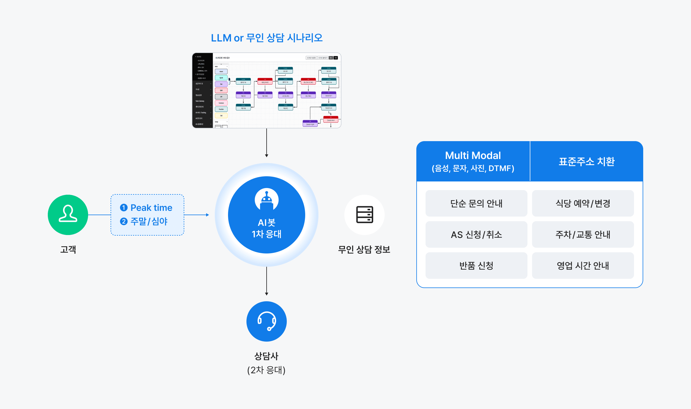 상담사 연결 없이 무인으로 상담할 수 있도록 지원하는 무인상담봇 솔루션입니다.