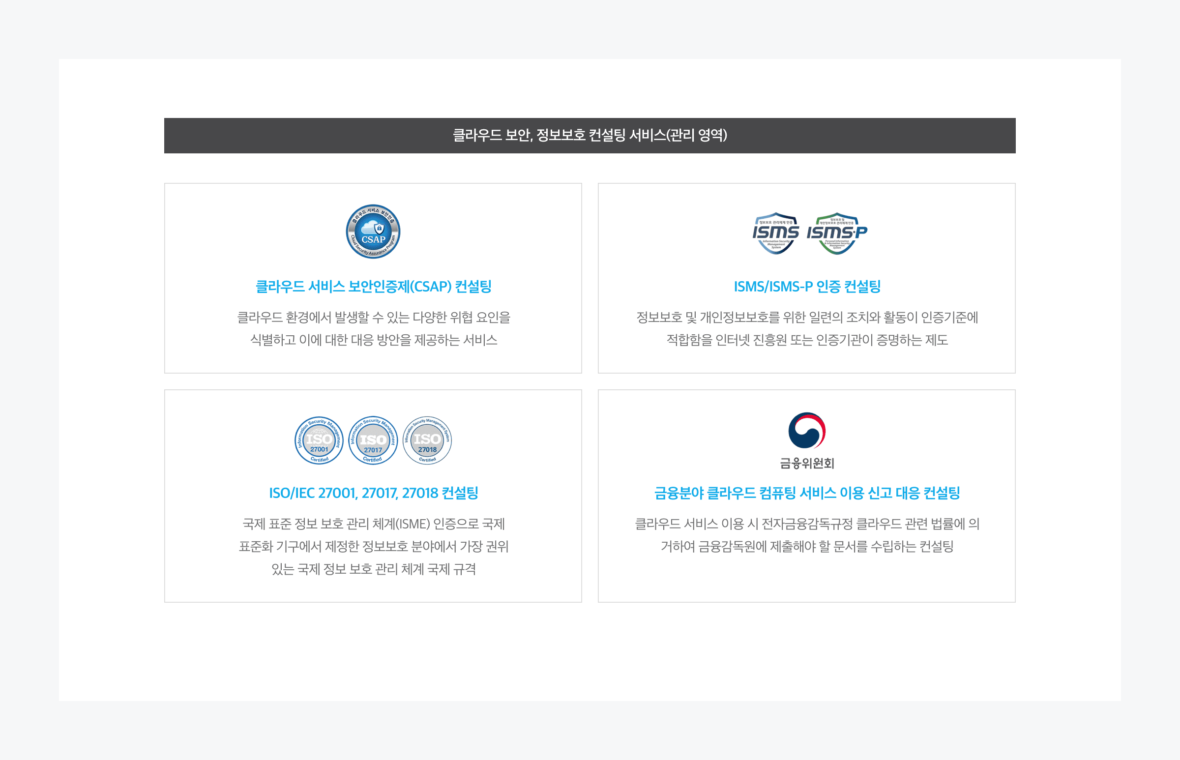 • ISO/IEC 27001,27017,27018 컨설팅