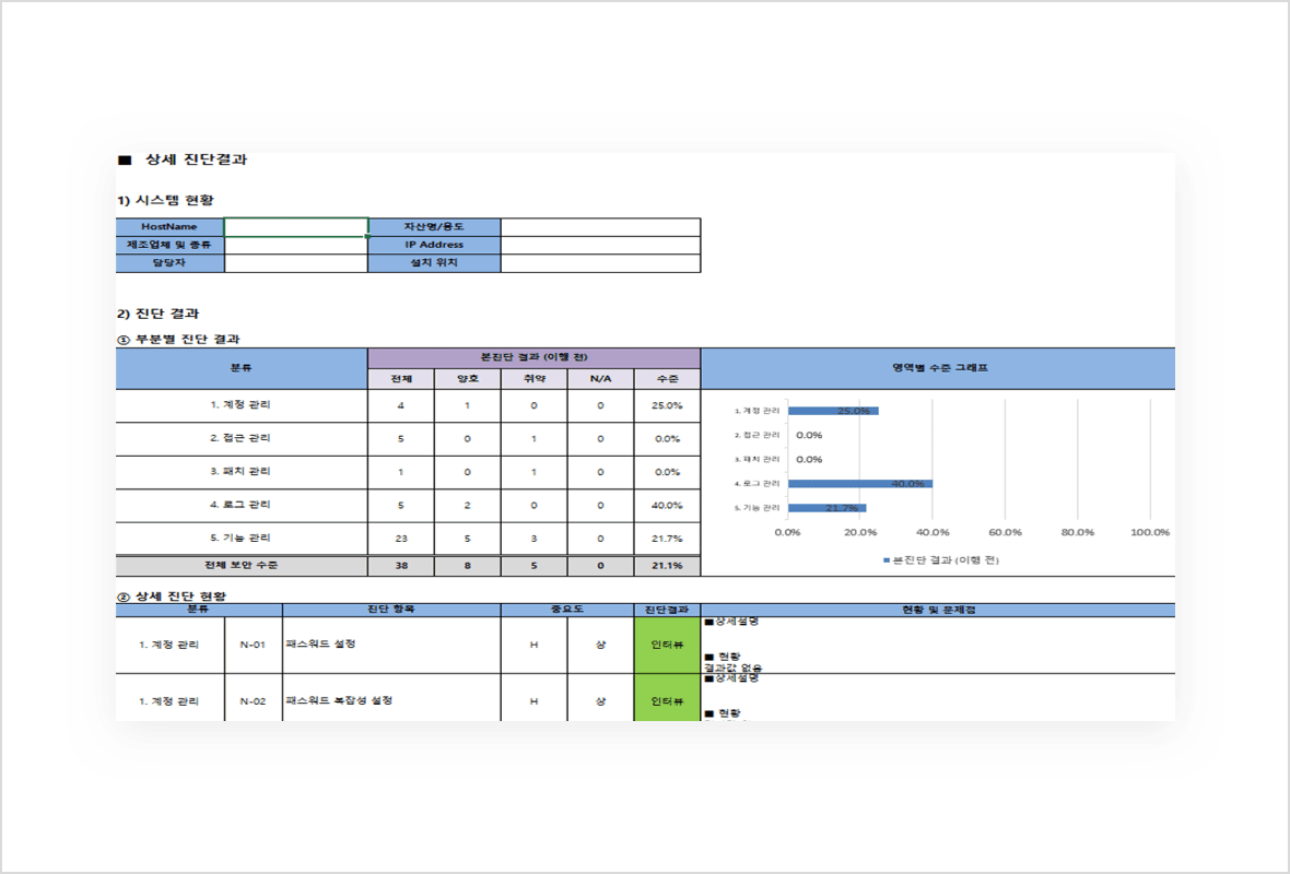 • 효율적인 자산 식별 및 관리를 위해 정보자산 관리대장을 문서화합니다.