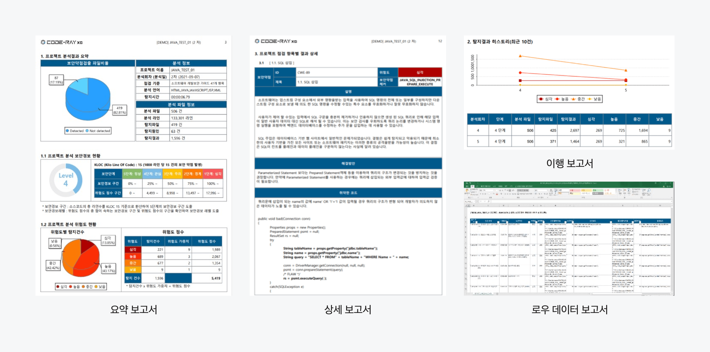 : 탐지된 보안약점에 대한 로우 데이터 정보 제공