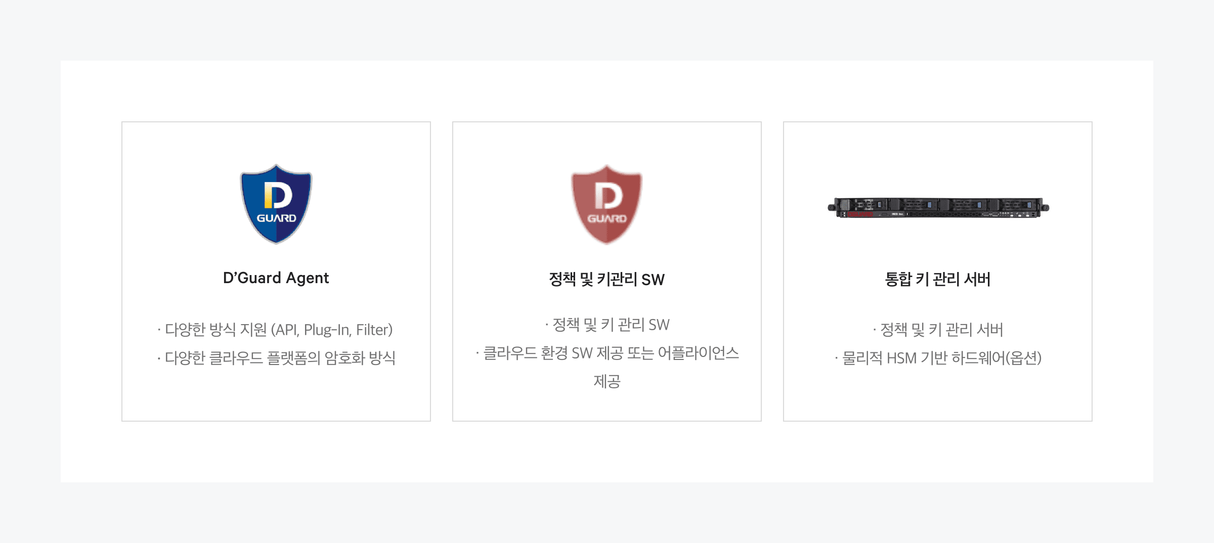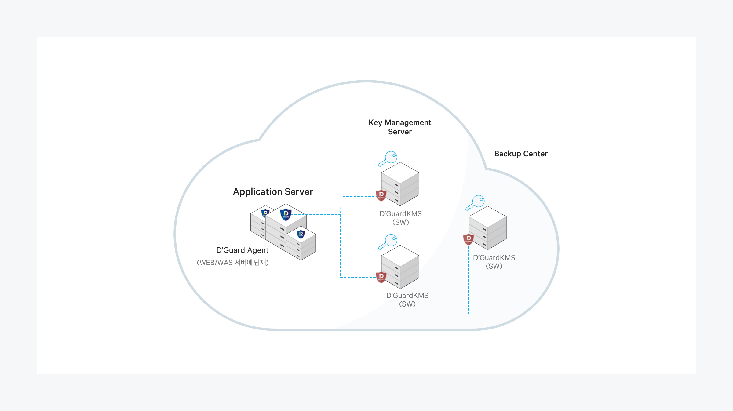 제품은 암호화 Agent와 키 관리 서버로 구성되어 있습니다.