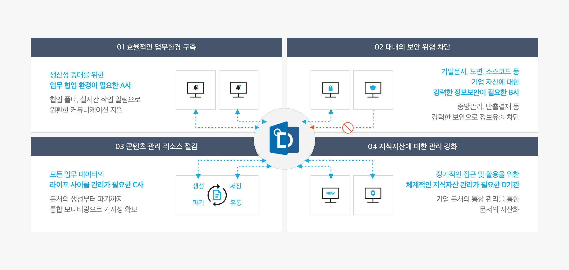 사용자 PC 내 기업의 모든 데이터를 통합 관리함으로써 강력한 보안과 협업의 편의성을 동시에 만족합니다.