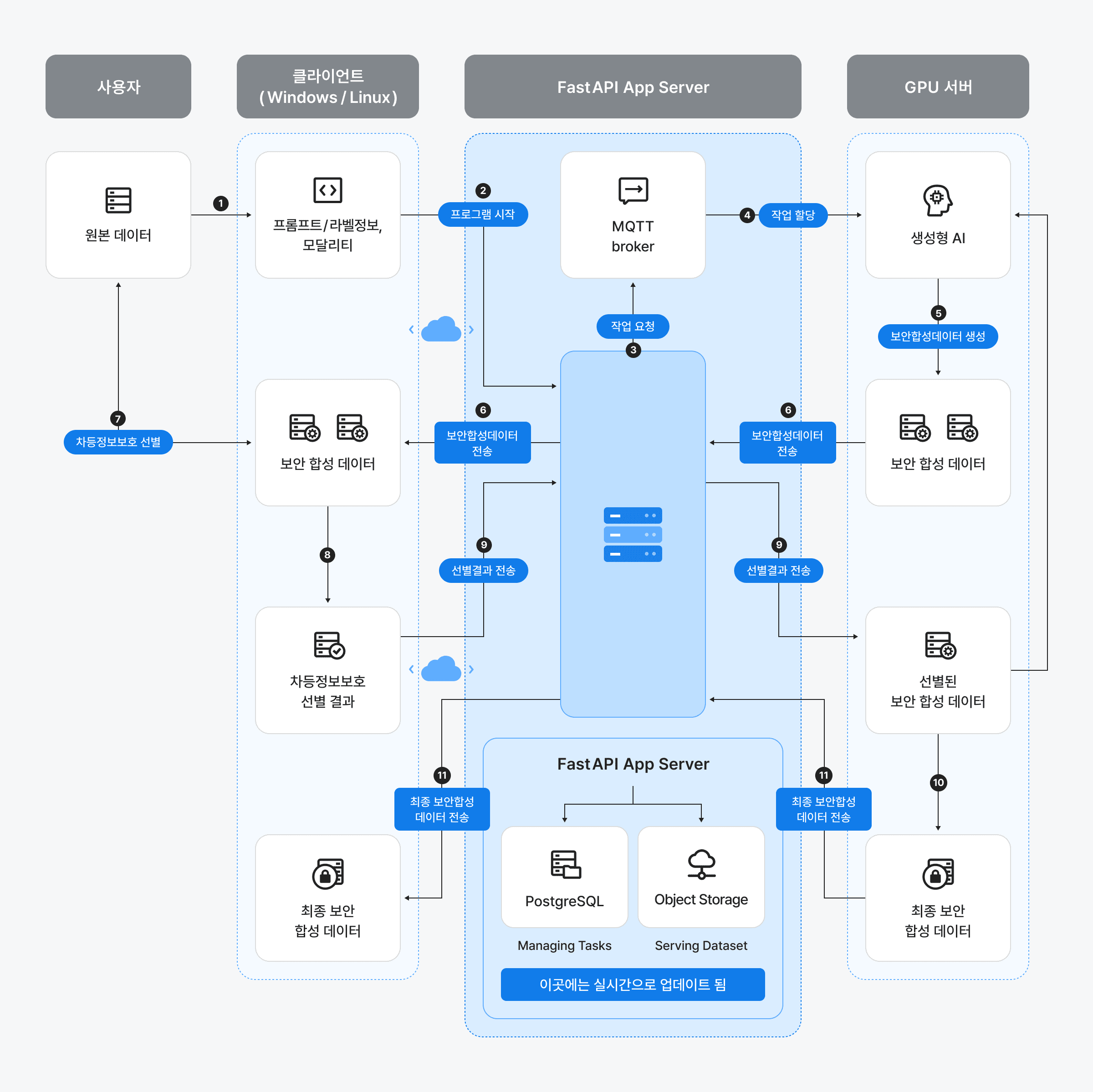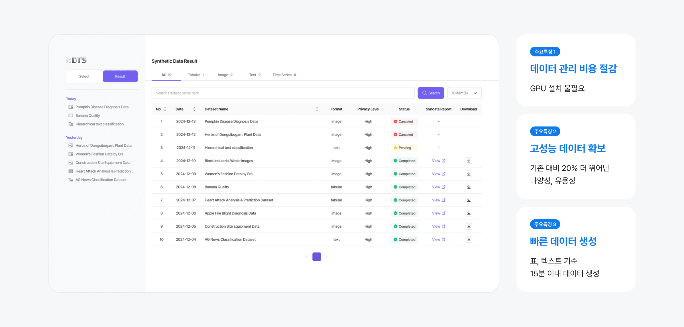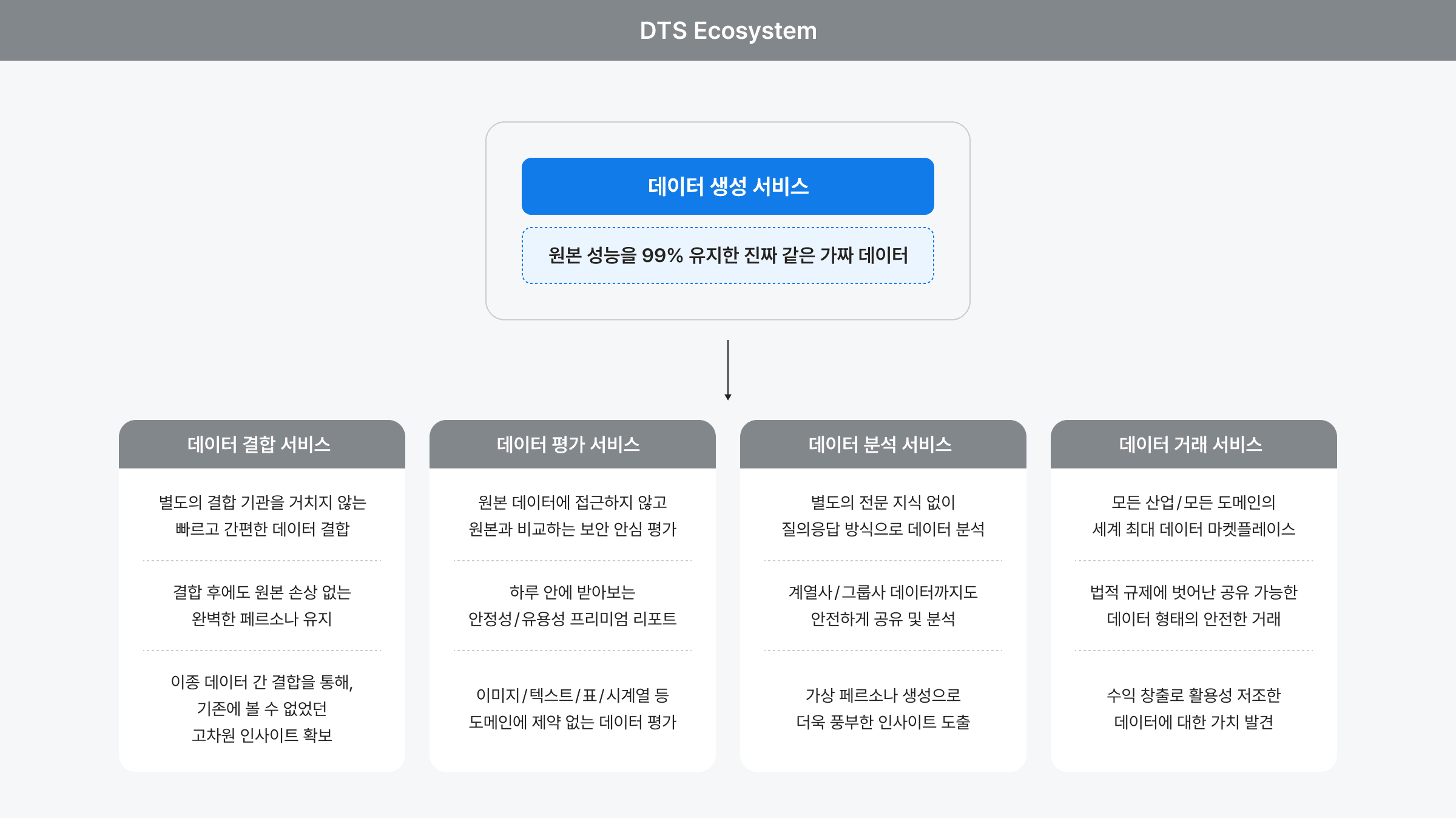DTS는 민감한 원본 데이터를 외부 서버로 전송하지 않고, 로컬 환경인 프라이빗 존에서 안전하게 합성 데이터를 생성하는 혁신적인 솔루션입니다.