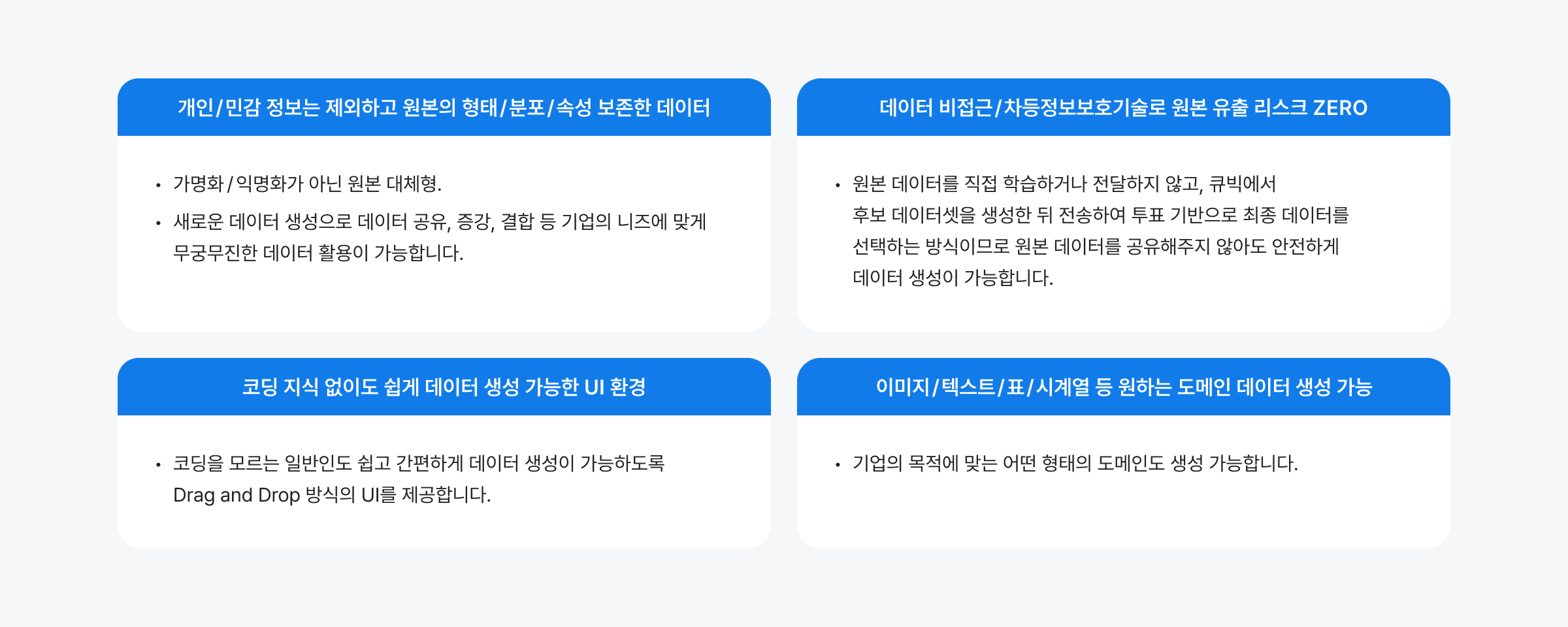 •Time series, DNA 등 특수 도메인에 대한 단건 합성데이터 생성은 가격 협의가 필요합니다.