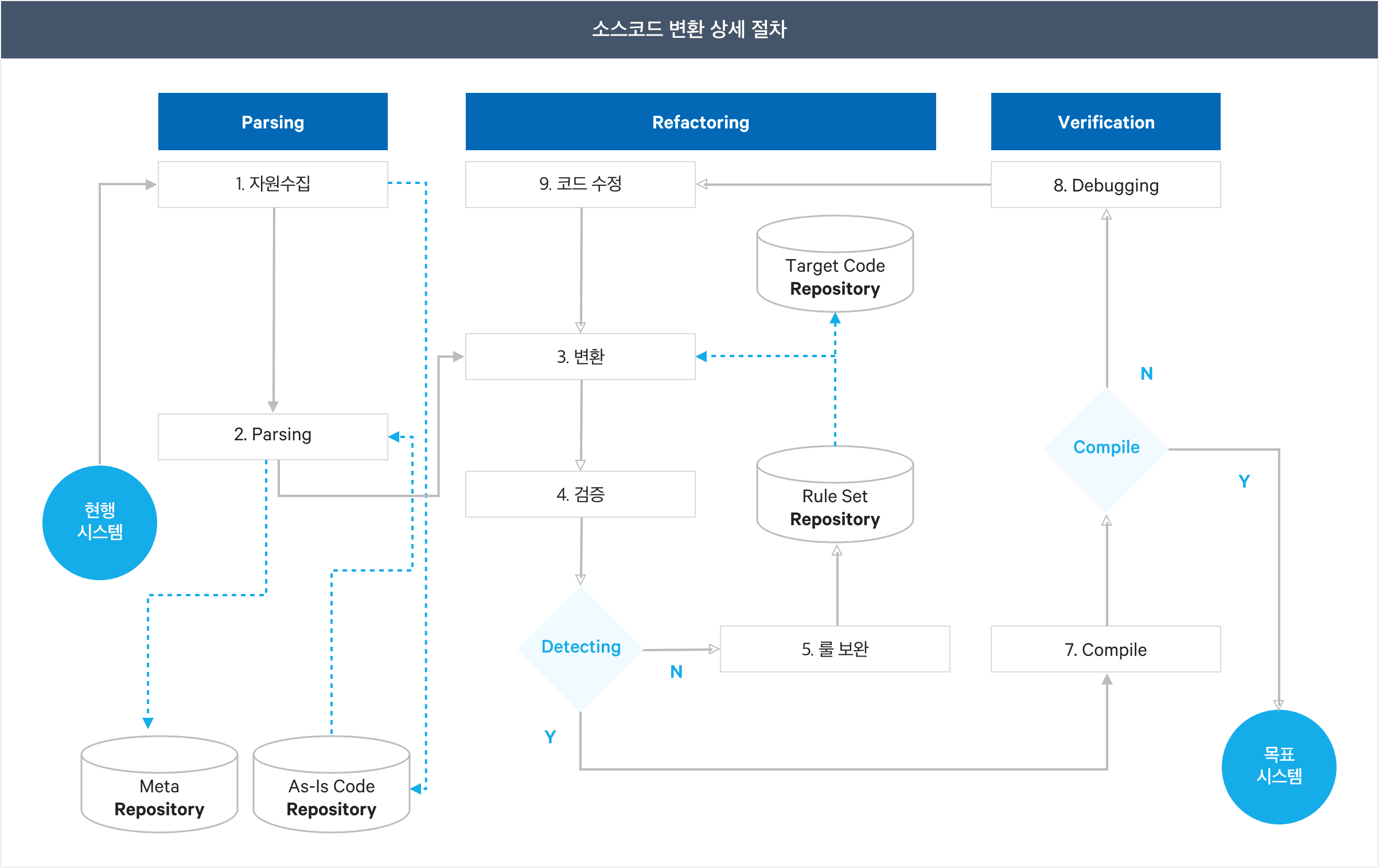 · 응용 프로그램의 소스 코드를 목표 인프라 환경 기준으로 자동 변환하는 솔루션이다