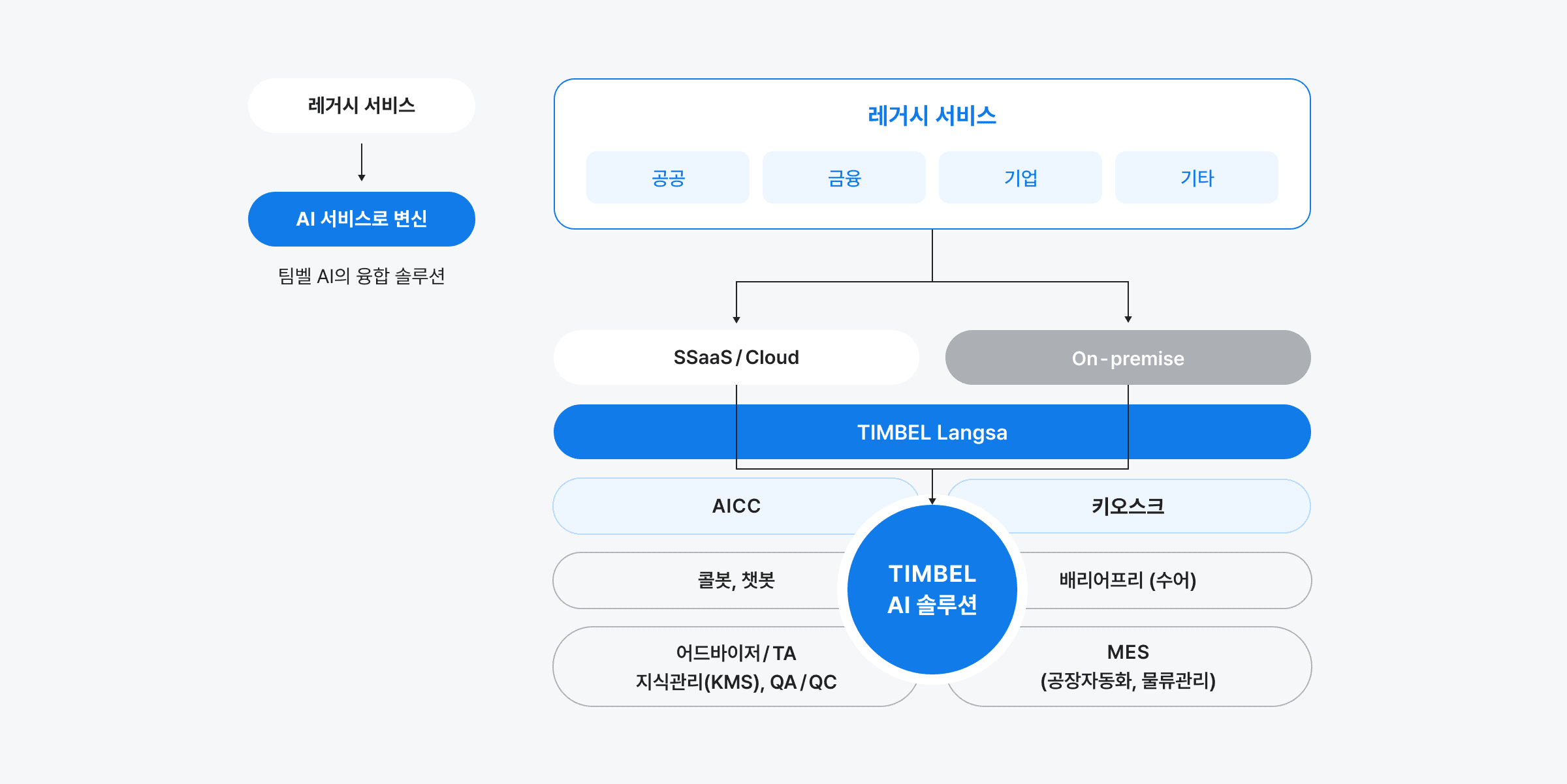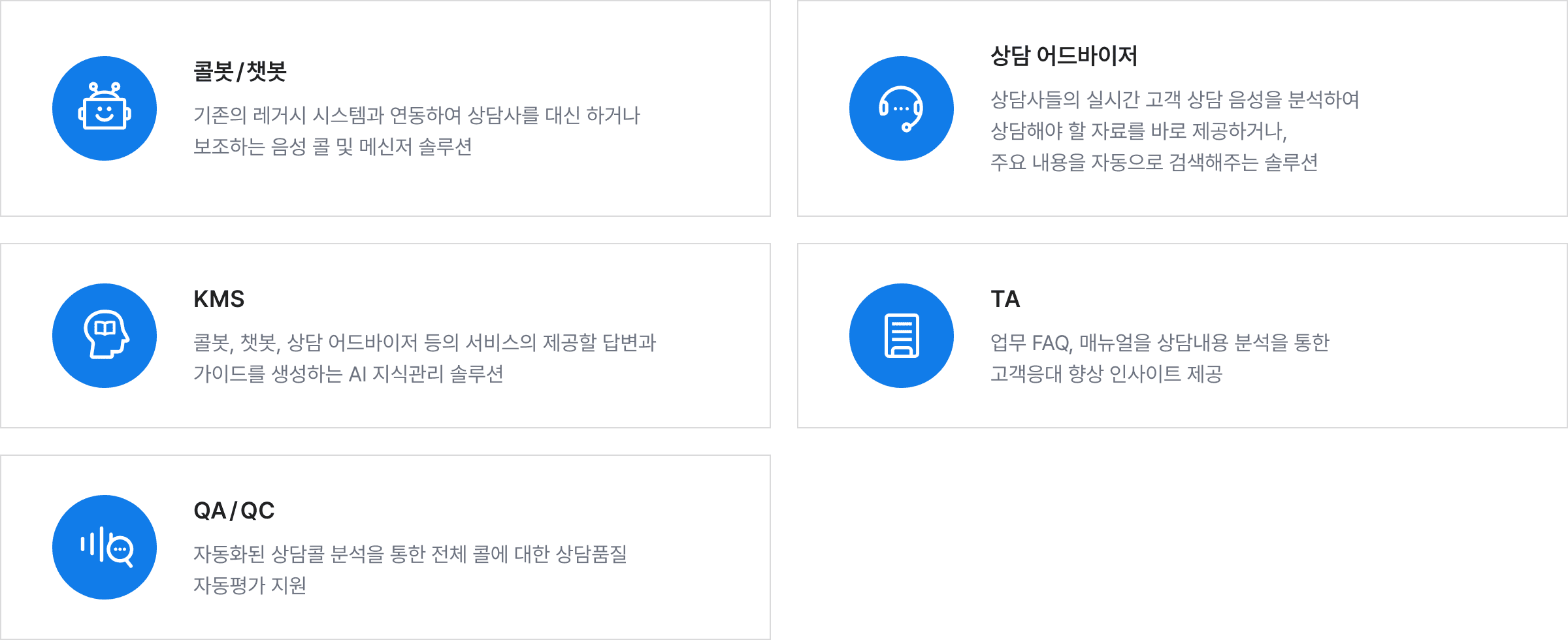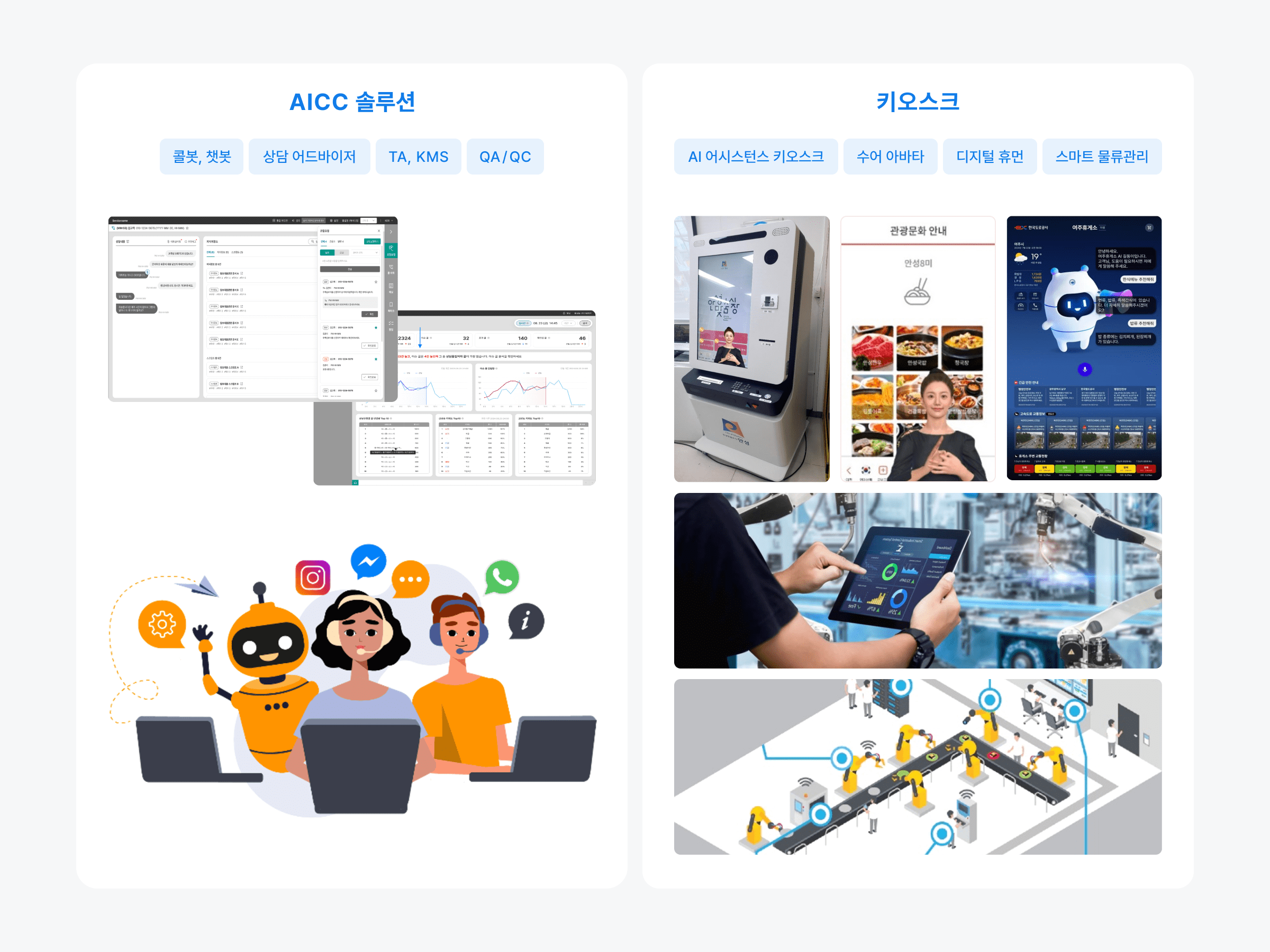 생성형 AI 대화엔진을 활용하여 기존의 다양한 레거시 서비스 (콜봇, 챗봇, 키오스크, MES)를 스마트하게 만드는 솔루션입니다.
