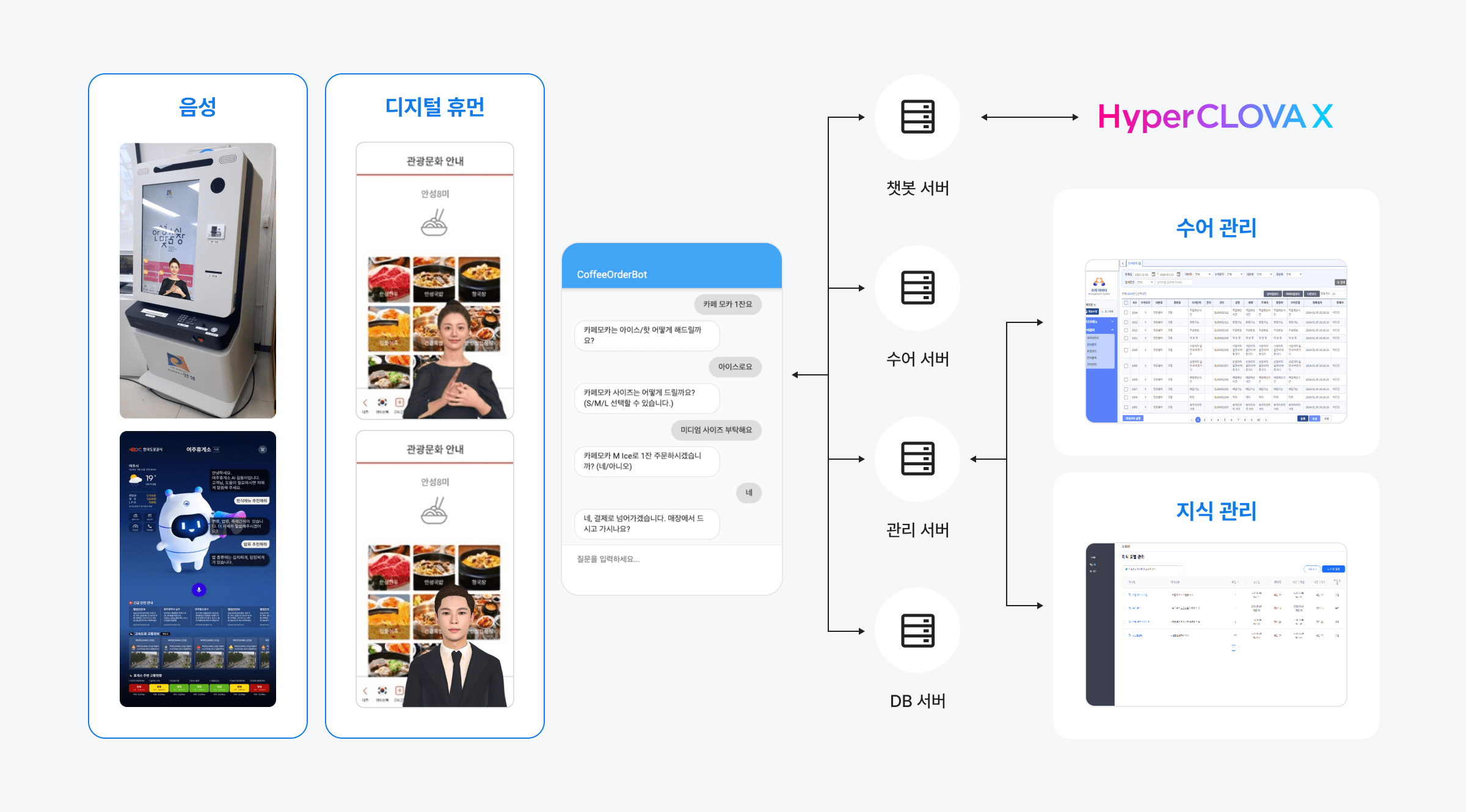 키오스크가 설치된 서비스 별 정보를 음성 대화 형식으로 AI 인포메이션 형태로 대응하며,