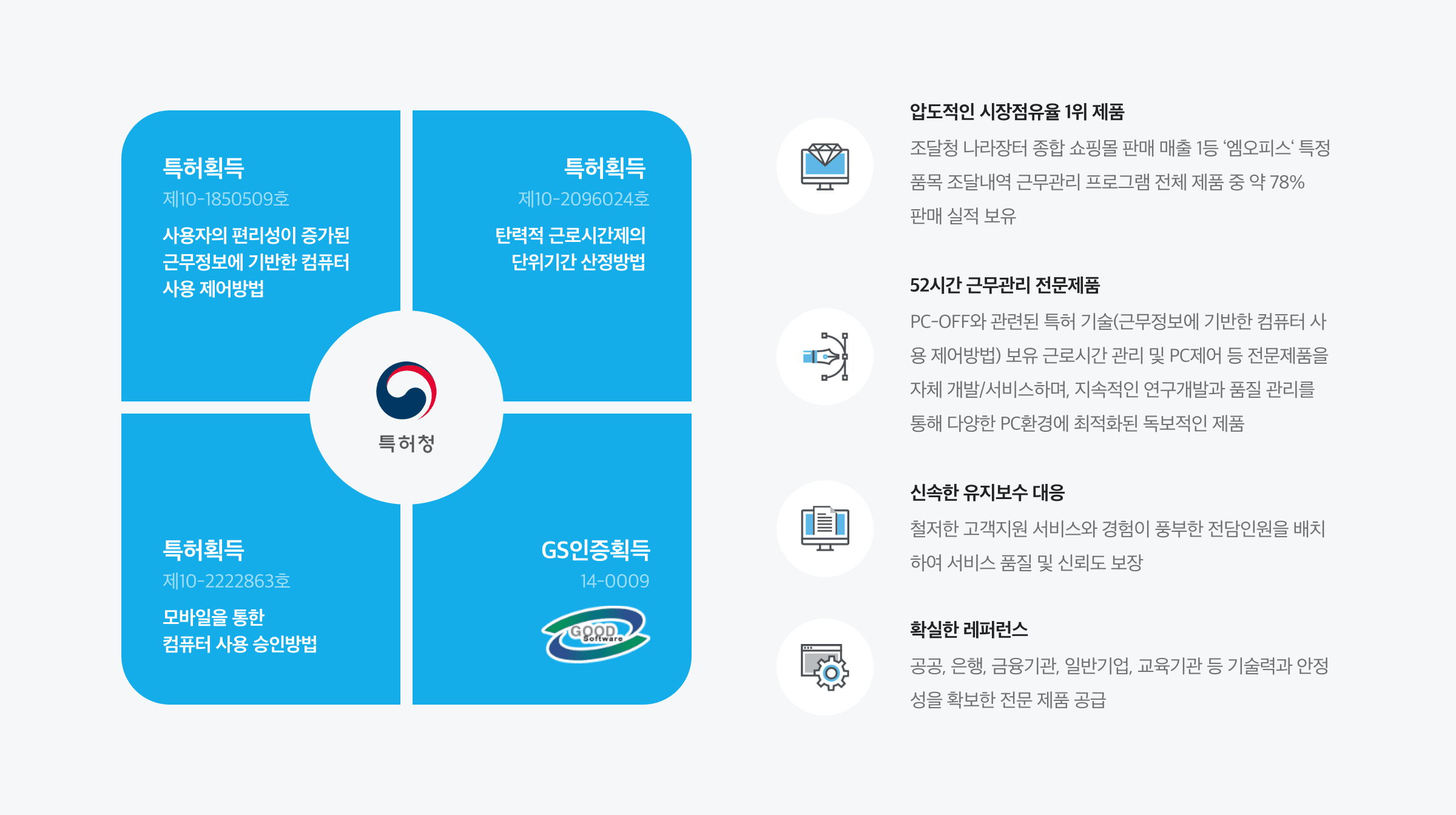 다양한 기업의 인사 정책과 PC환경에 최적화 및  안정화된 독보적인 1등 제품 입니다.