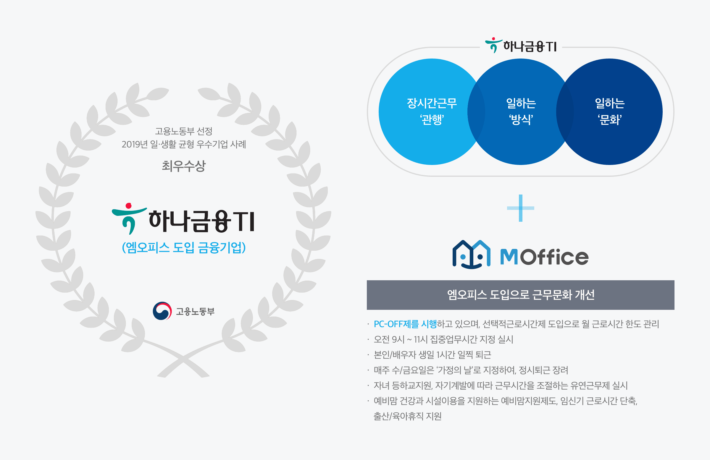 일과 생활이 행복해지는 시스템 “ 엠오피스” 도입을 통해 근로기준법에 따른 법정근로시간 준수 환경을 갖추고, PC-OFF 시스템 도입으로 투명한 시간외근무 관리를 도모하며, 직장 내 워라밸(Work and Life Balance) 문화를 만들어 갑니다