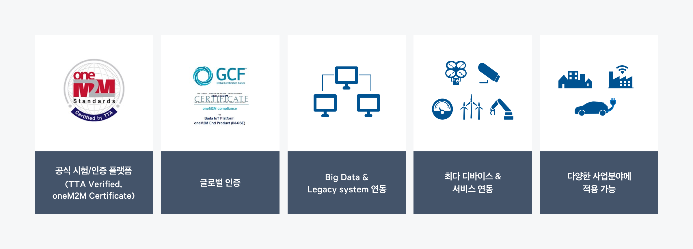 디바이스 등록/관리/보안, 데이터 통신/저장/관리 등 제공
