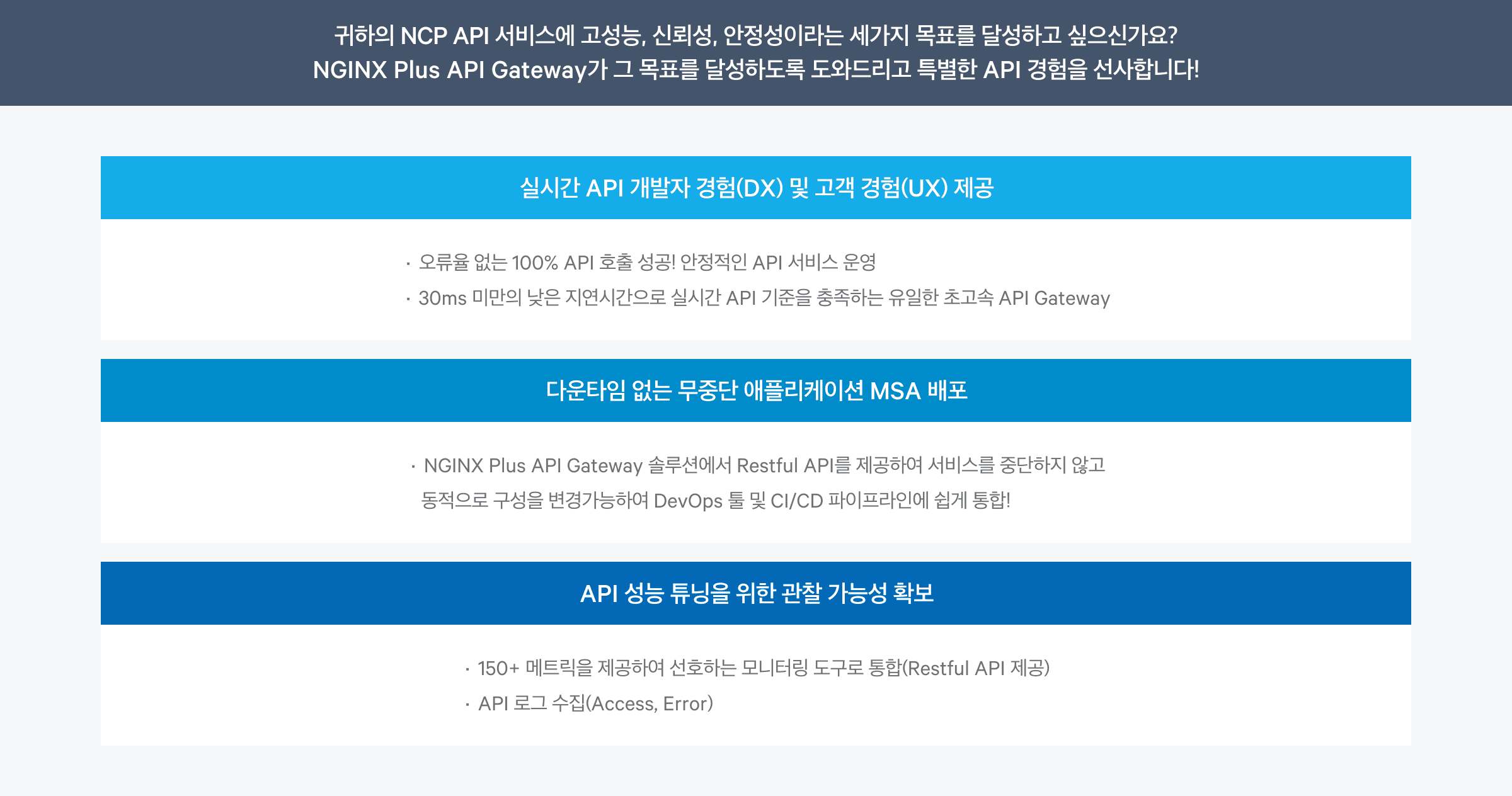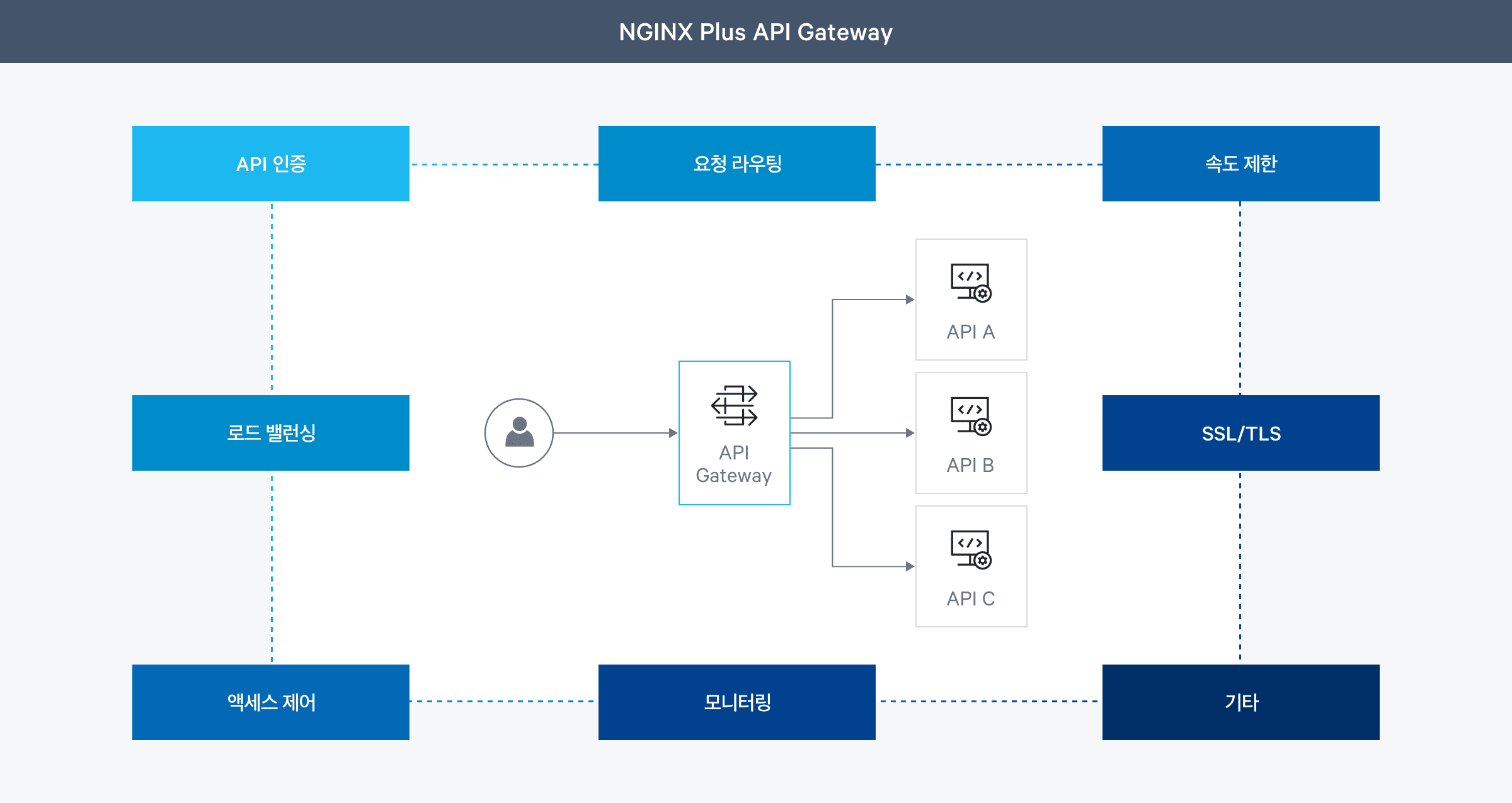 핵심 기능은 위 NGINX Plus API Gateway와 같음.