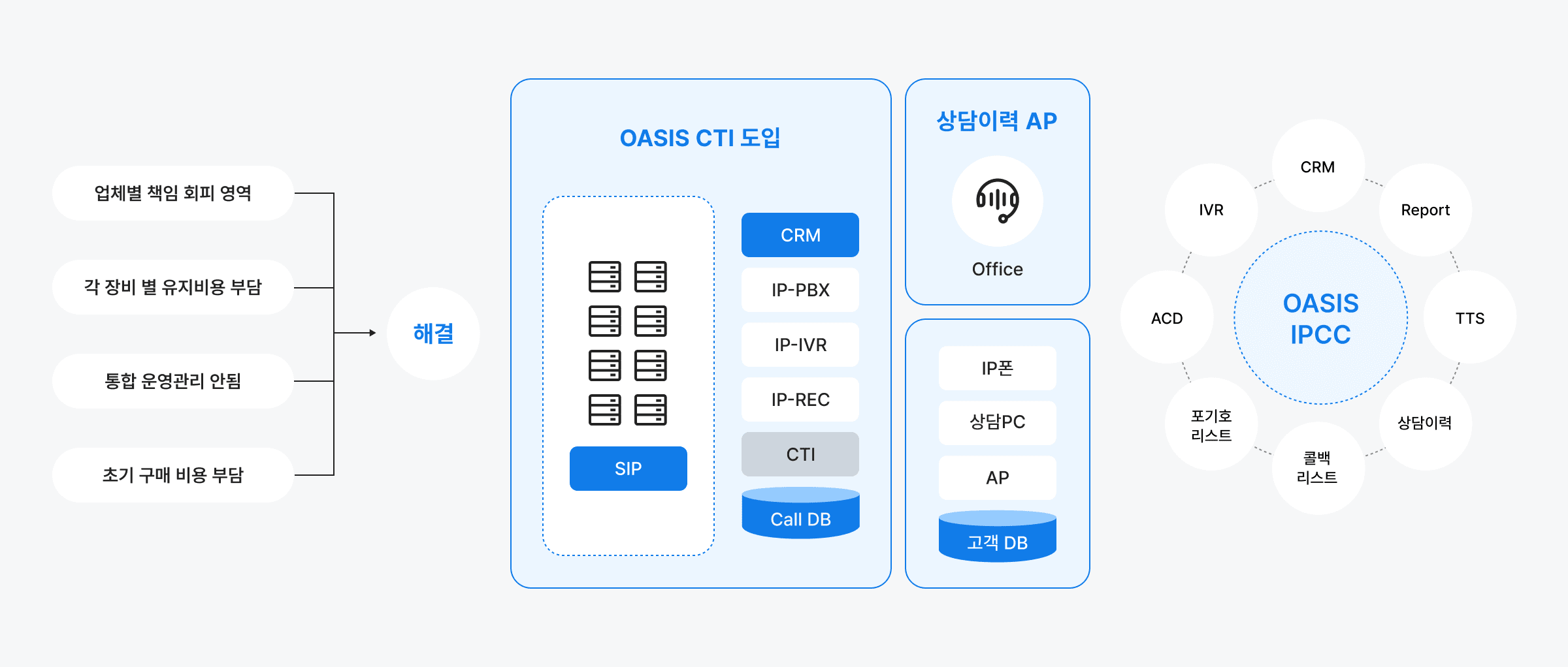 OASIS는 현직 CS전문가가 쓰고 있는 종합 IPCC로서, 내부 업무 효율성과 고객 만족도를 높일 수 있습니다