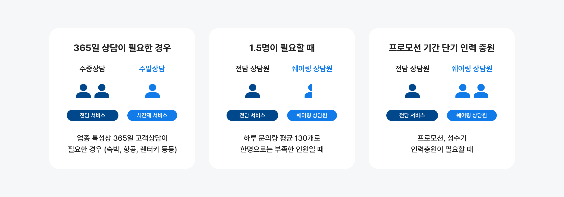 - 주말, 성수기, 단기운영, 시간제 등 맞춤형 상담 CS Operating