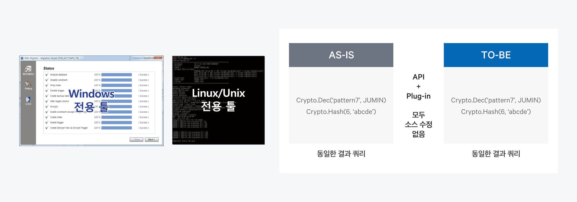 이 기종 DBMS에 대한 암·복호화 및 보안설정 통합 관리 기능 제공
