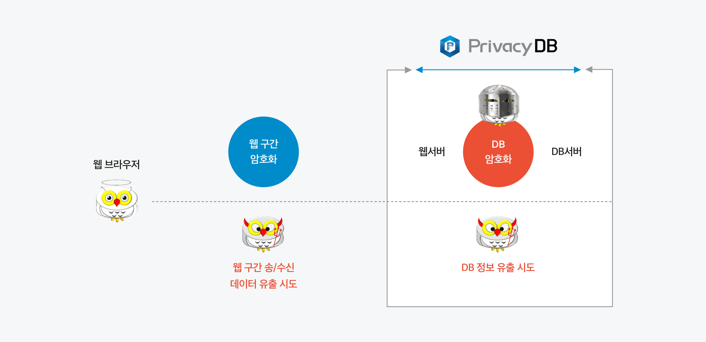 데이터베이스(DB)의 중요 데이터를 암호화하여 보호함으로써 정보 유출 시에도 데이터 기밀성을 보장하며