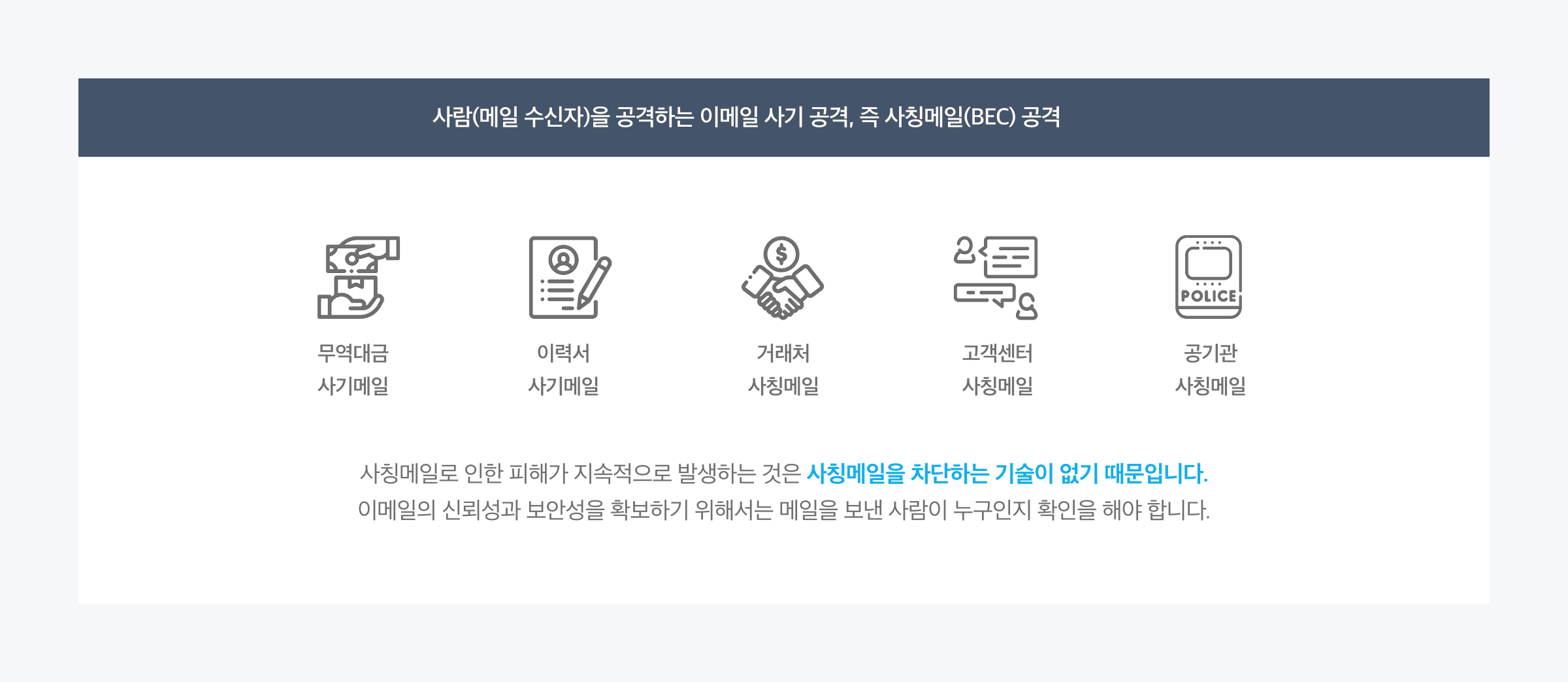 기존 메일보안시스템에서는 탐지할 수 없는 사칭메일, 스피어피싱을