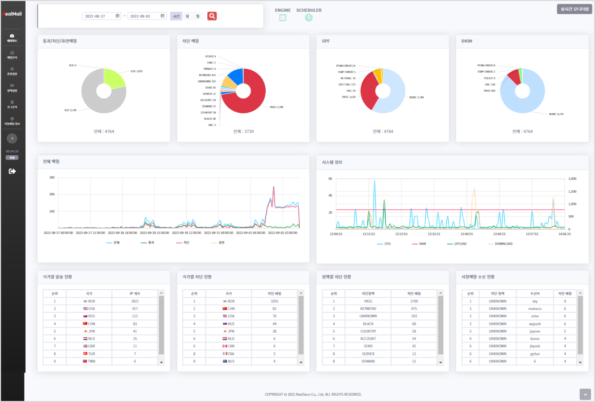 :  스팸메일차단시스템과 이메일APT시스템 운영 중