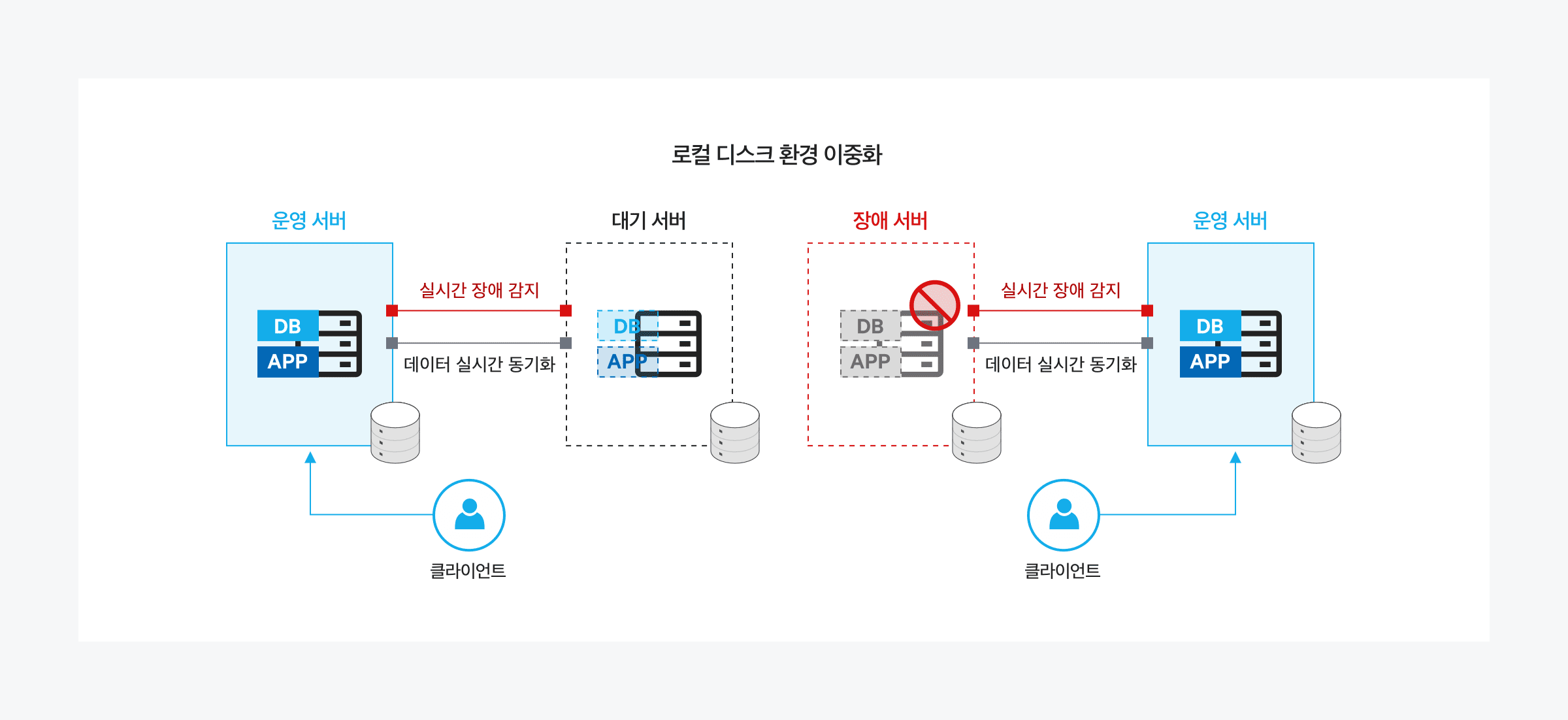 자동 또는 수동 페일오버하여 서비스 연속성을 보장하고 가용성을 극대화 시키는 고가용(HA) 솔루션입니다.