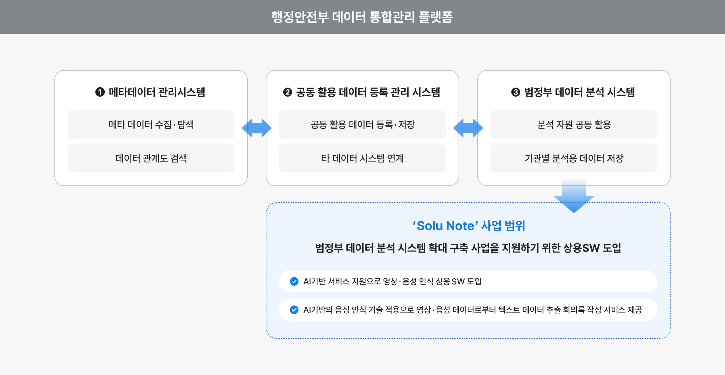 솔루노트의 활용 및 확장성의 내용은 1)정부, 공공기관, 기업 등에서 행정 및 비즈니스 회의 자동화에 활용 됩니다. 2)PC 버전(솔루노트라이트)과 서버 버전으로 제공되어 조직 규모와 필요에 맞게 선택이 가능합니다. 3)향후 문서 요약, 보고서/이메일 작성, 번역, 업무용 쳇봇 등 추가 AI 서비스를 적용 예정입니다.