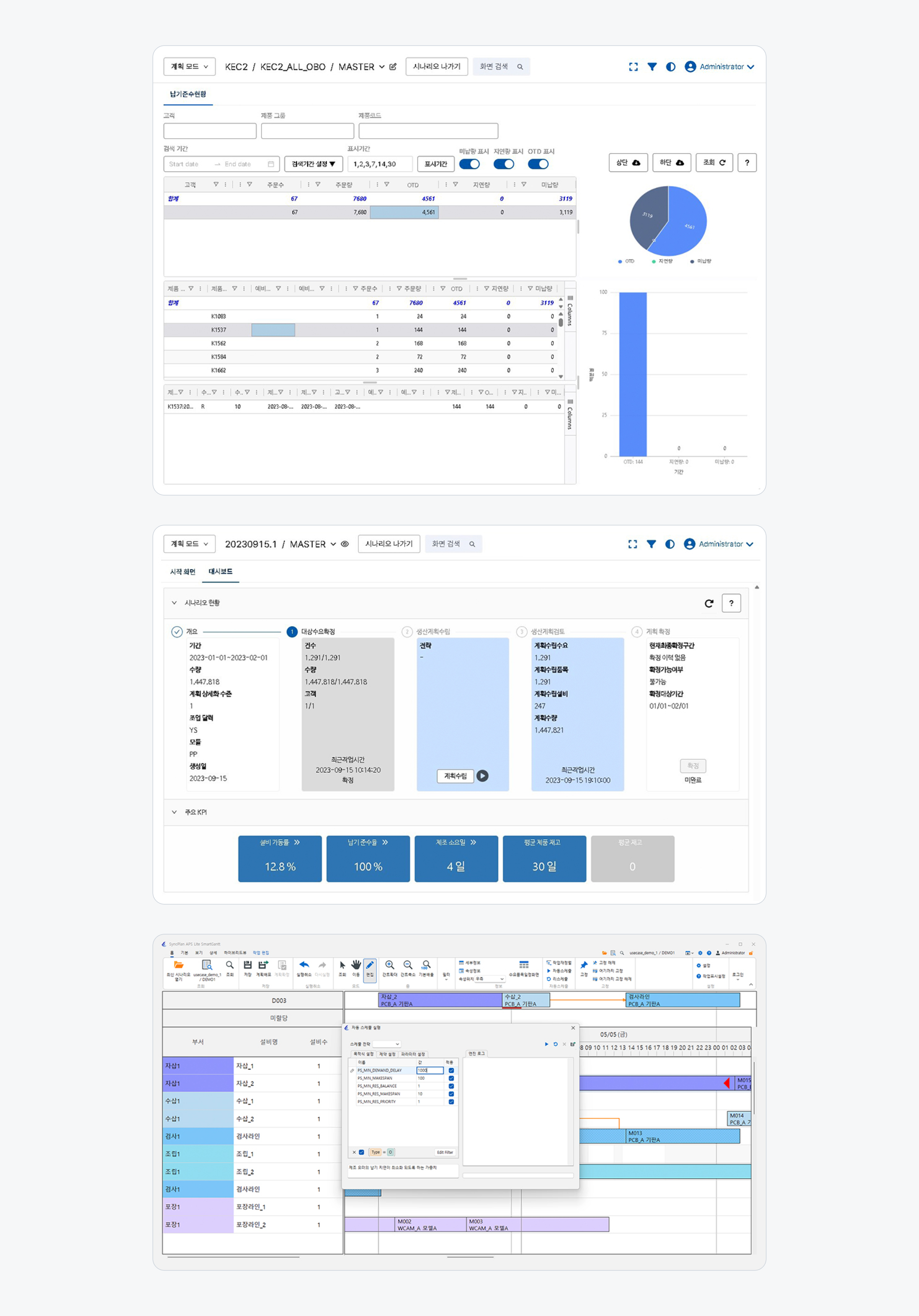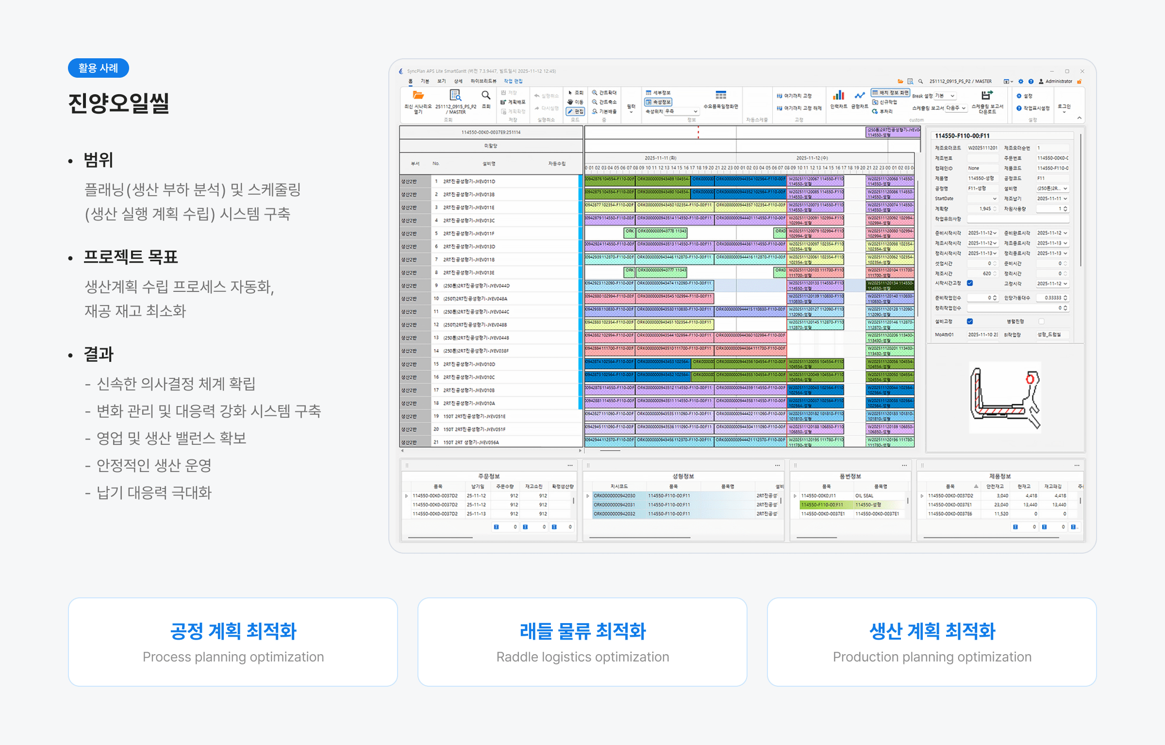 SyncPlan APS는 AI 및 최적화 기술 기반의 스마트팩토리 고도화 솔루션입니다.