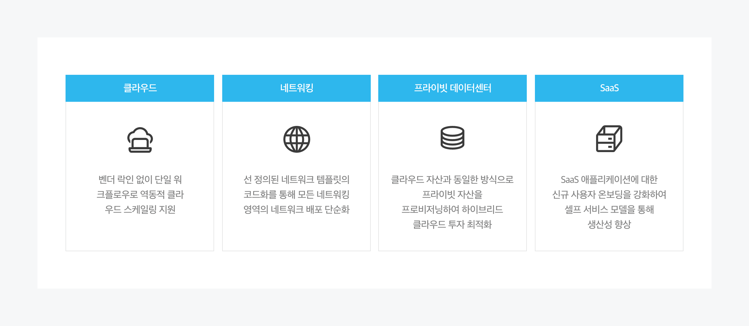 퍼블릭 클라우드, 네트워킹, 프라이빗 데이터센터, SaaS 애플리케이션의 리소스 프로비저닝 및 관리를 지원합니다.