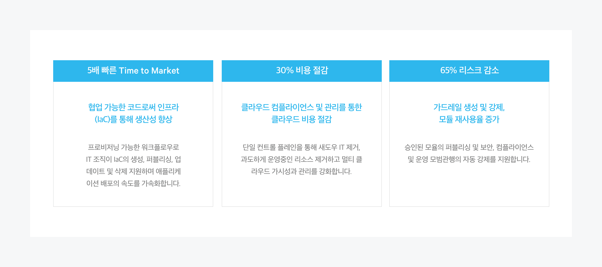 보안 및 컴플라이언스가 적용된 안전한 인프라 변경 적용 가능합니다.