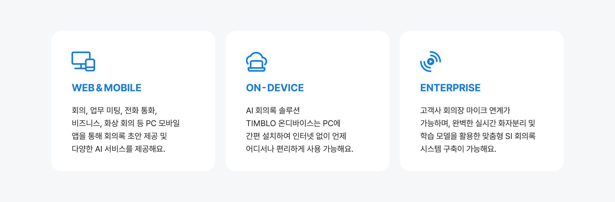 SaaS, On-premise, On-device 등 고객 맞춤형 솔루션을 제공하고 있습니다.