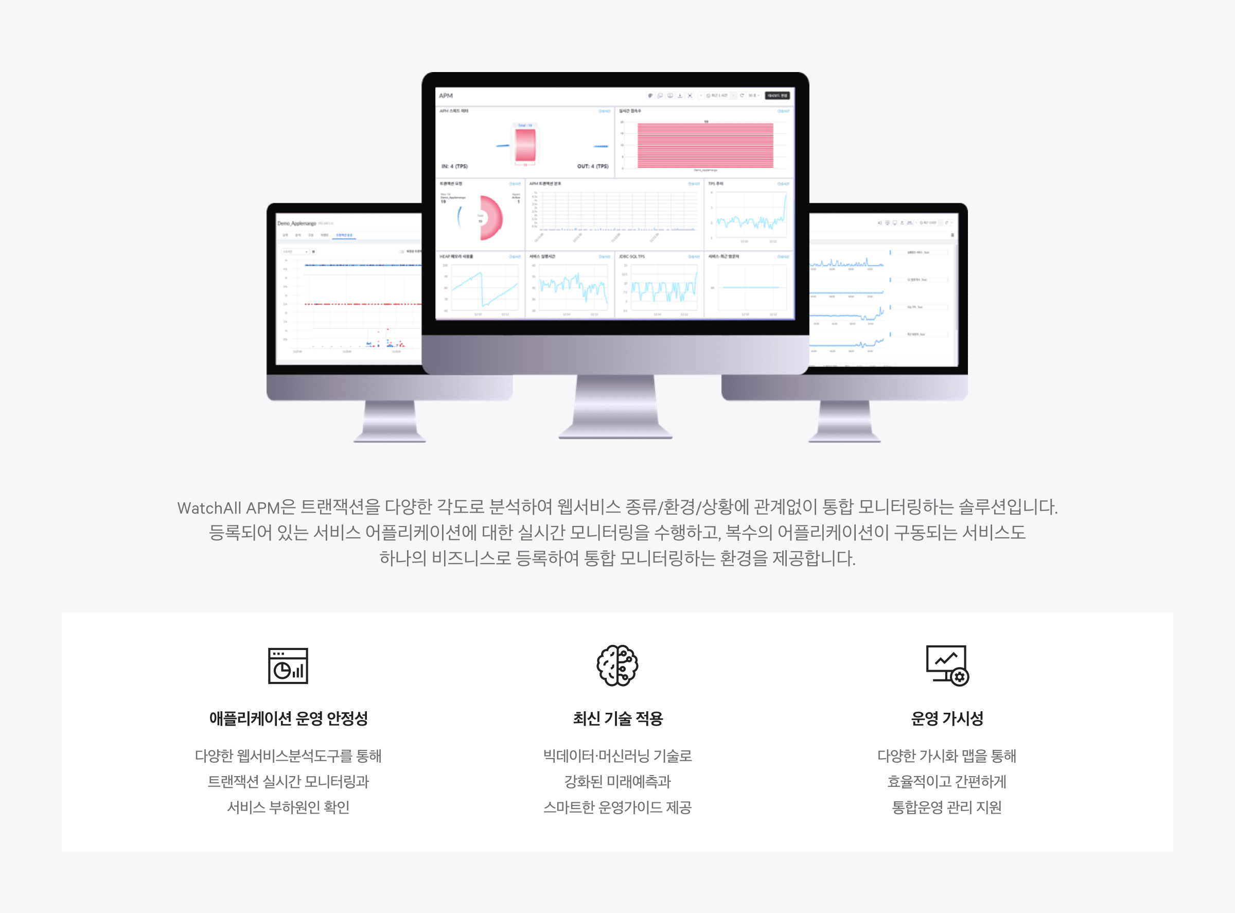 다양한 알람 제공 비정상 트랜잭션 발생이나 서비스 품질 저해 요소 탐지 시 다양한 알람 제공으로 직관적인 장애 인지