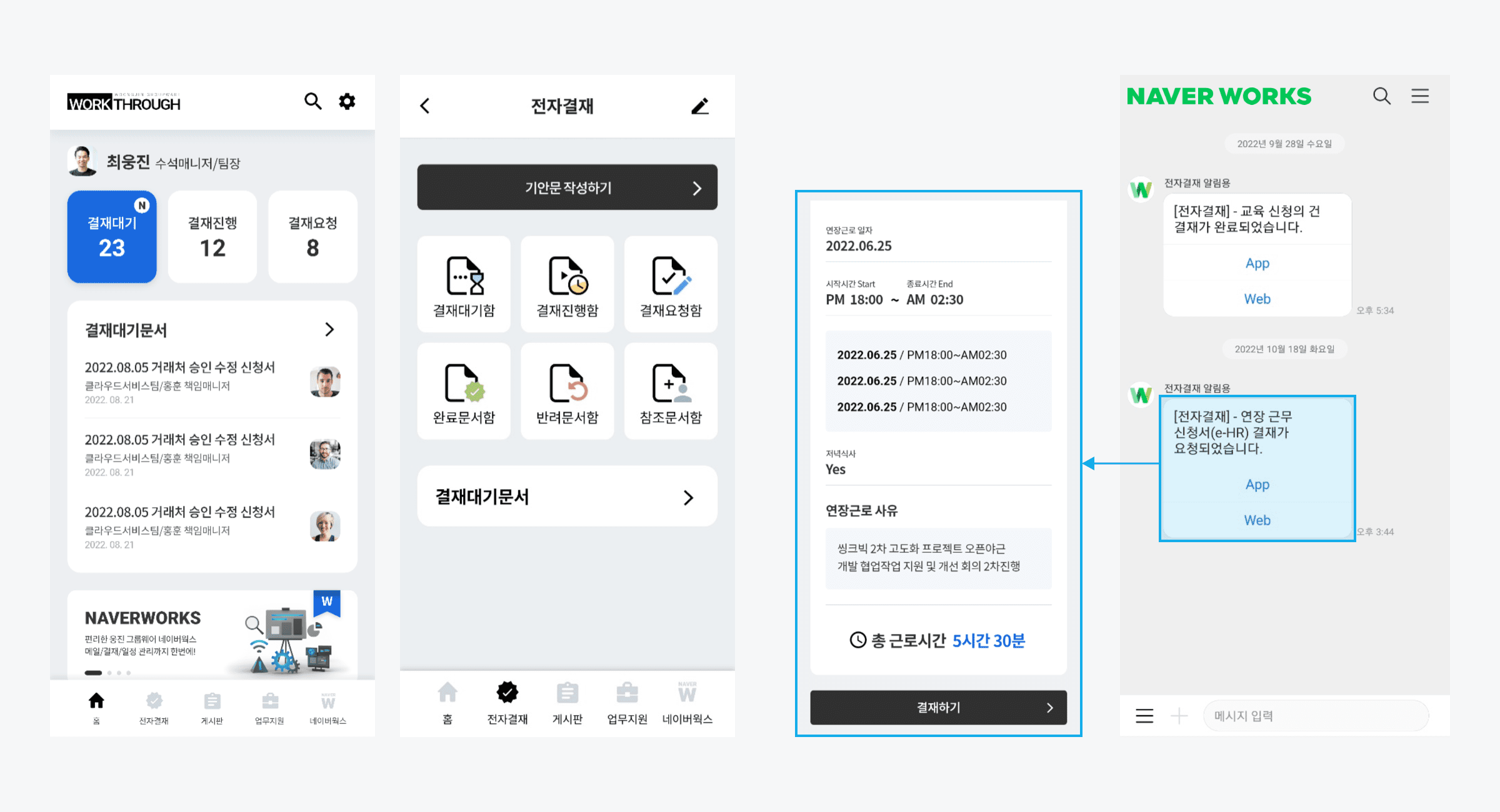 - 결재 완료/반송 등에 대한 알림 수신설정 기능 지원
